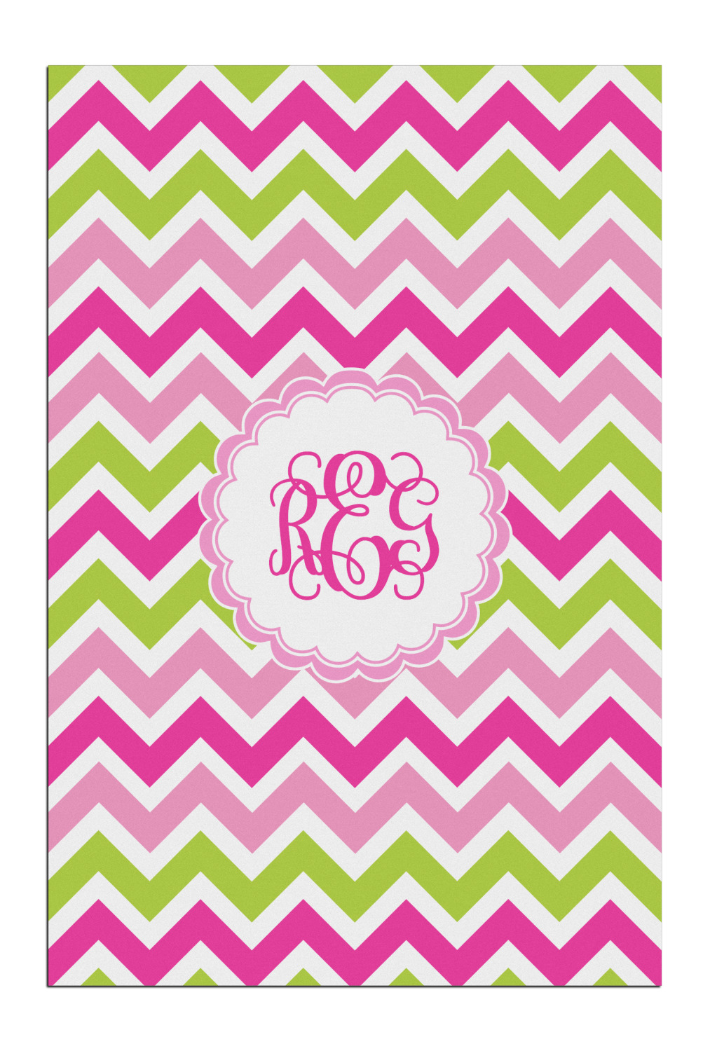 Looking for a girly girl design. This pink and green chevron print with a scalloped label and an interlocking monogram is as girly as it gets. We have created this chevron pattern in lime green, orchid pink and hot pink. For all of us girly girls and princesses, this is our design choice!