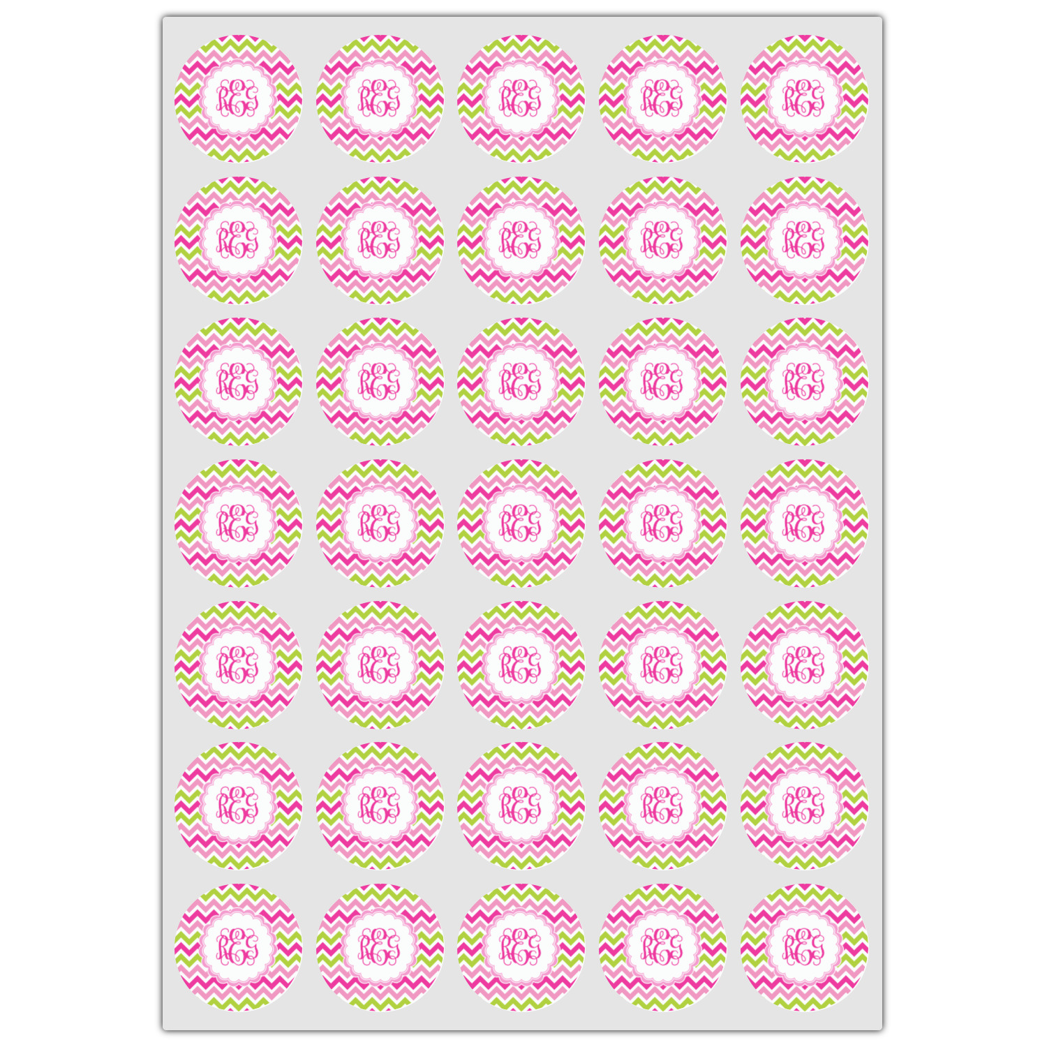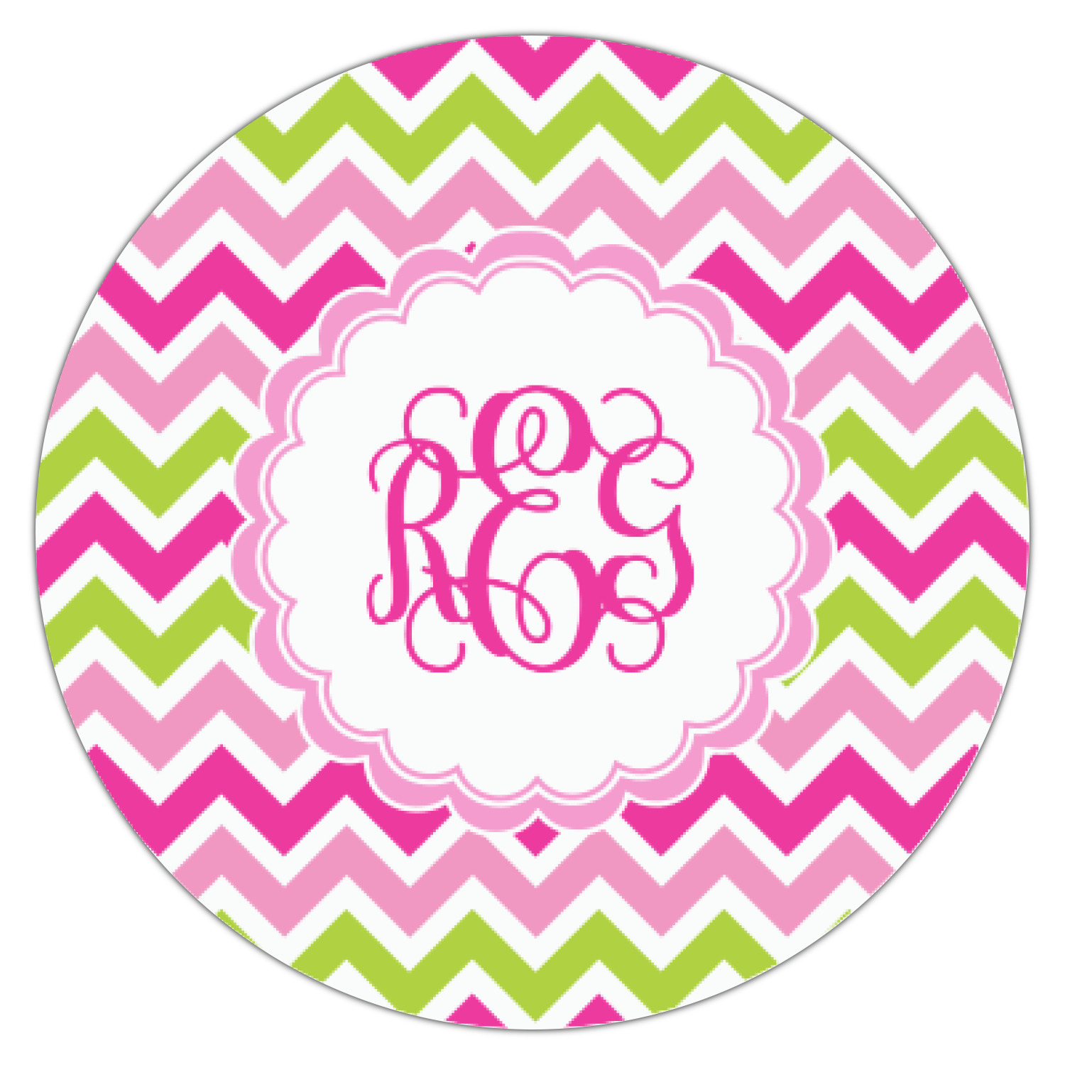Looking for a girly girl design. This pink and green chevron print with a scalloped label and an interlocking monogram is as girly as it gets. We have created this chevron pattern in lime green, orchid pink and hot pink. For all of us girly girls and princesses, this is our design choice!