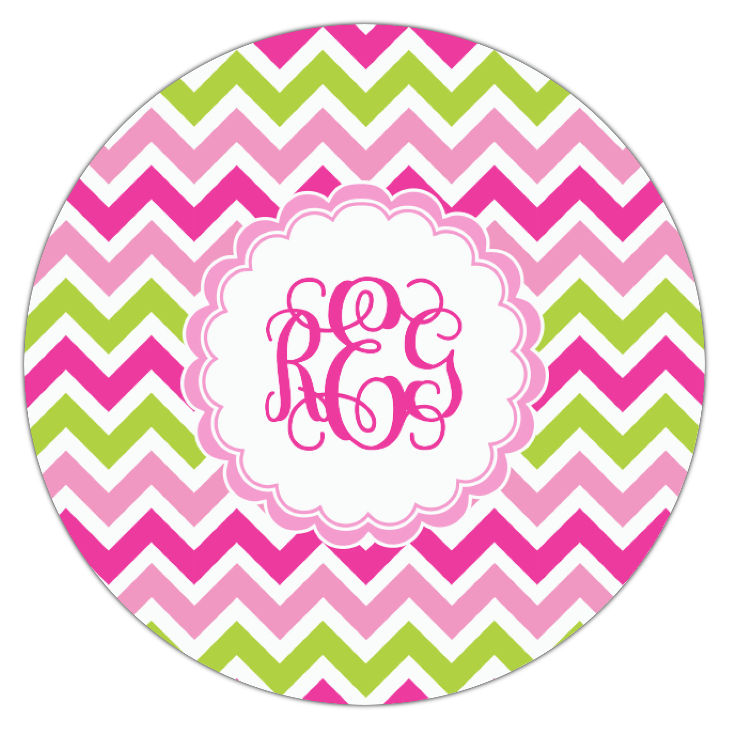 Looking for a girly girl design. This pink and green chevron print with a scalloped label and an interlocking monogram is as girly as it gets. We have created this chevron pattern in lime green, orchid pink and hot pink. For all of us girly girls and princesses, this is our design choice!
