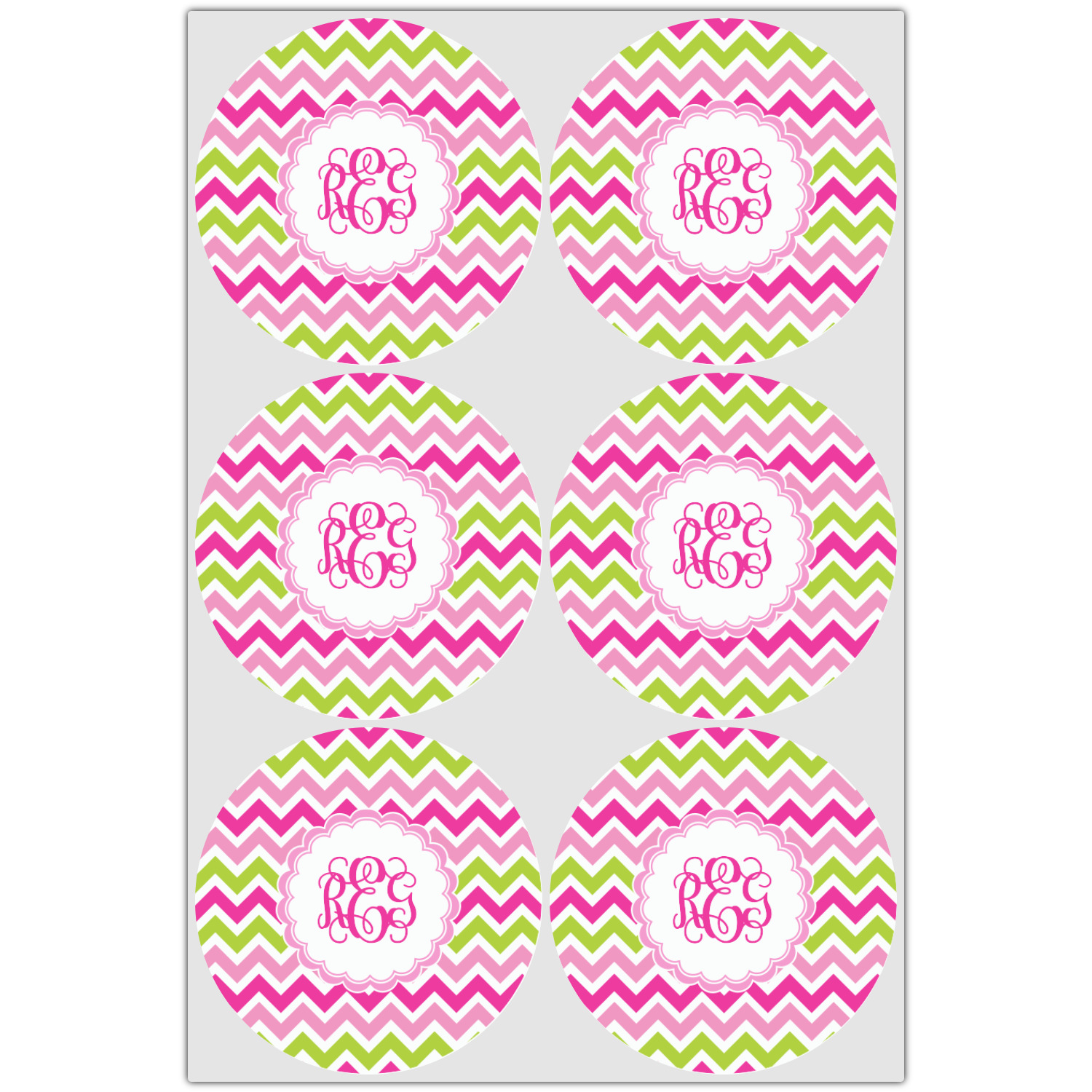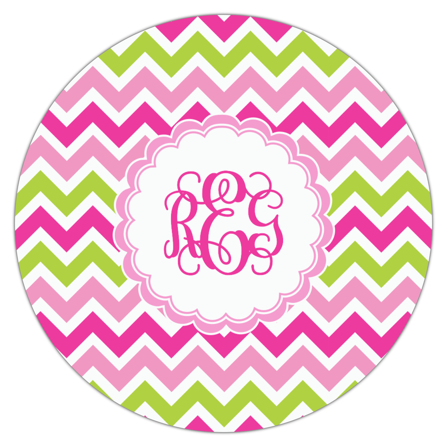 Looking for a girly girl design. This pink and green chevron print with a scalloped label and an interlocking monogram is as girly as it gets. We have created this chevron pattern in lime green, orchid pink and hot pink. For all of us girly girls and princesses, this is our design choice!