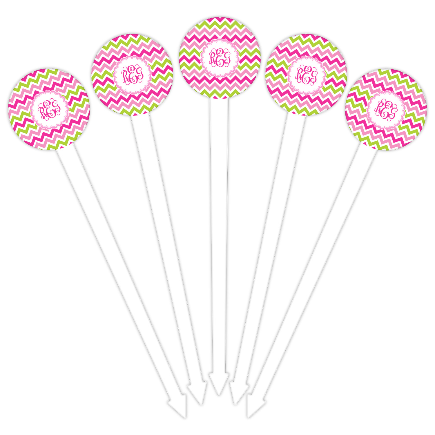 Our plastic cocktail picks have a round disc on top that is printed in full color with your event theme, colors, your logo, your photo, names, initials, monograms etc.