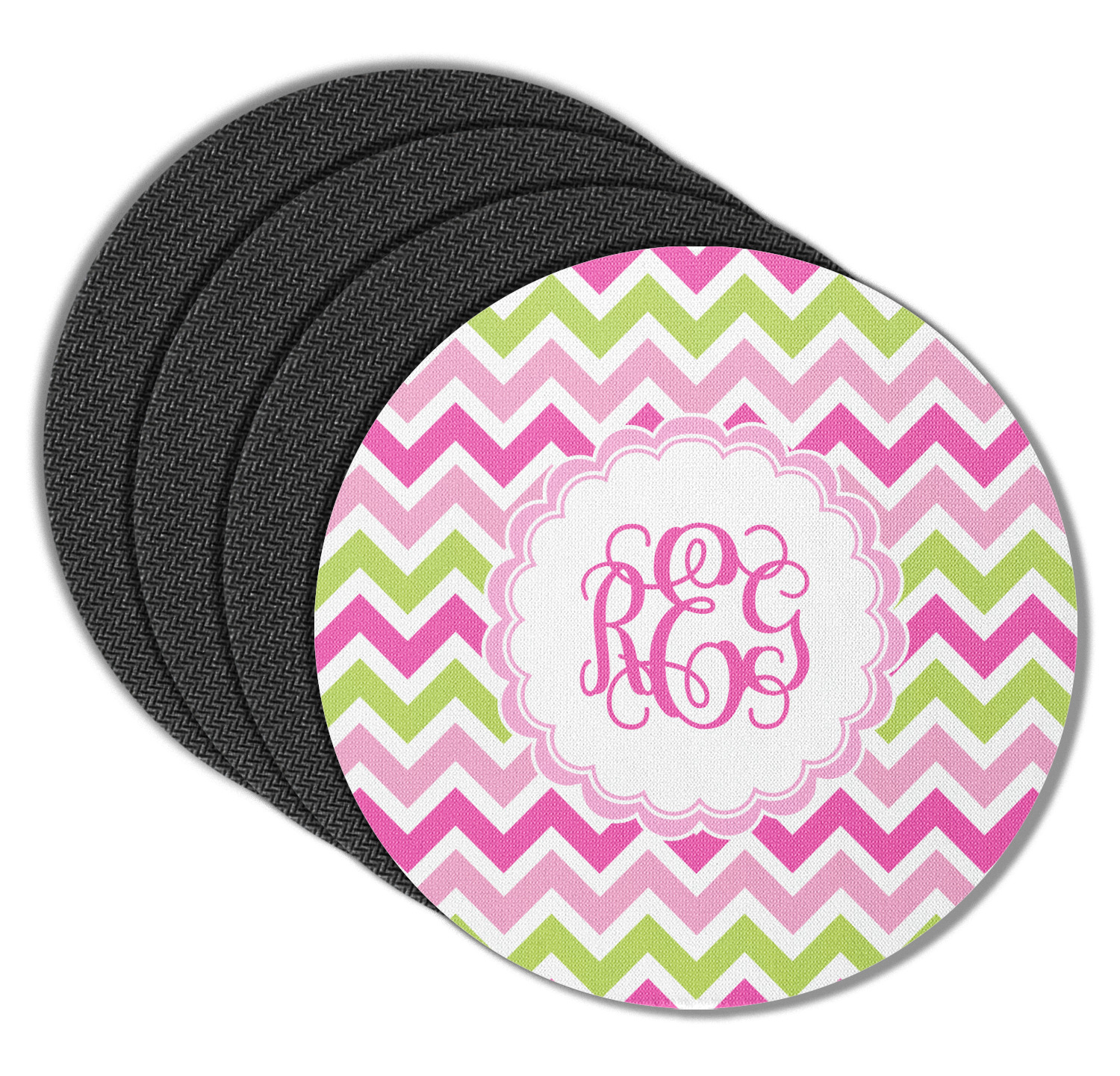 These drink coasters have a smooth, polyester top and a textured, rubber backing on its bottom. The non-slip rubber backing underneath works to keep any spills at bay. At 4 by 4 by 0.25 inches thick, these custom coasters are a suitable size for most drinkware. Your personalization is displayed atop the face of the cup coaster. We sell these rubber coasters in two different shapes: square and round. You can buy each shape as singulars or as a set of 4.