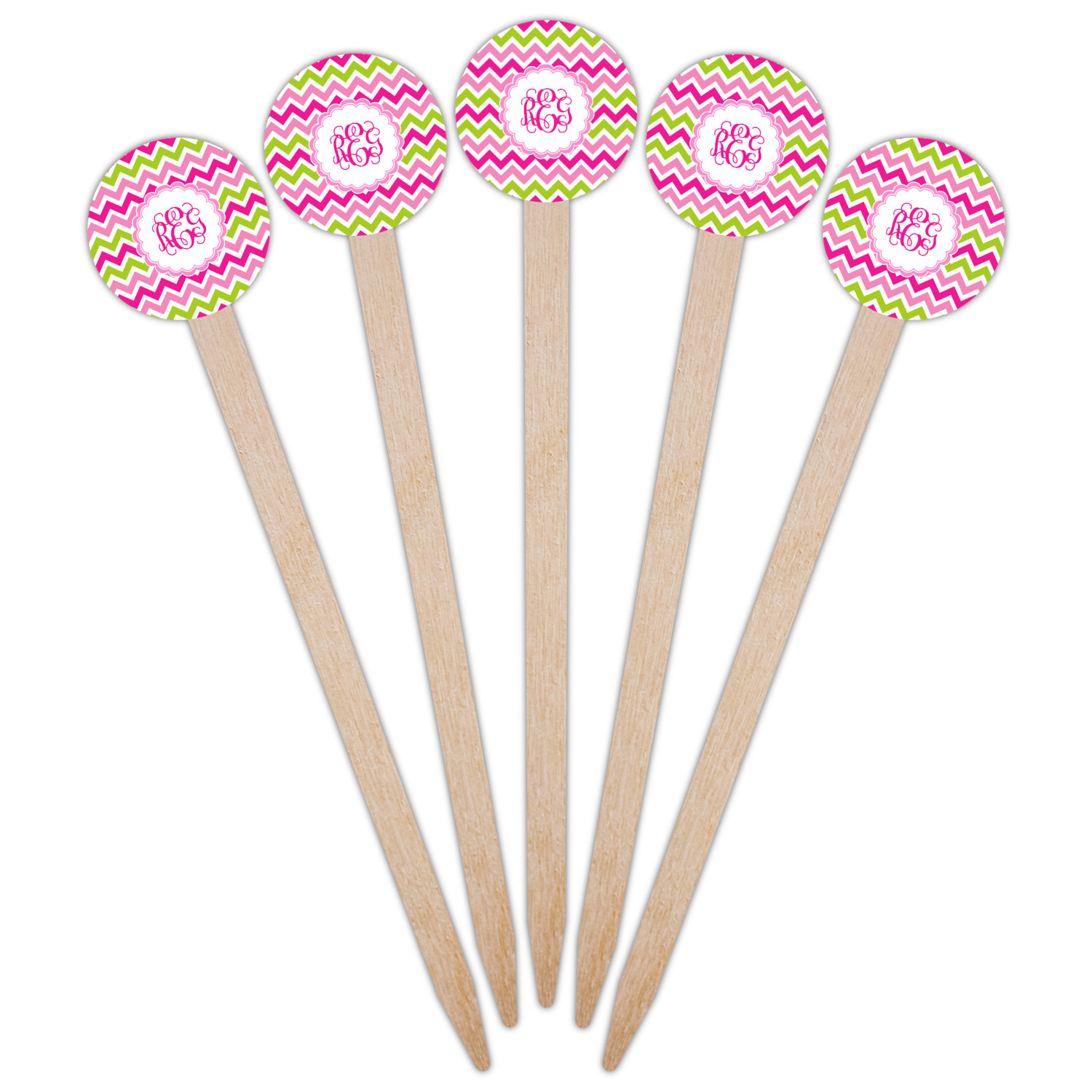 Looking for a girly girl design. This pink and green chevron print with a scalloped label and an interlocking monogram is as girly as it gets. We have created this chevron pattern in lime green, orchid pink and hot pink. For all of us girly girls and princesses, this is our design choice!