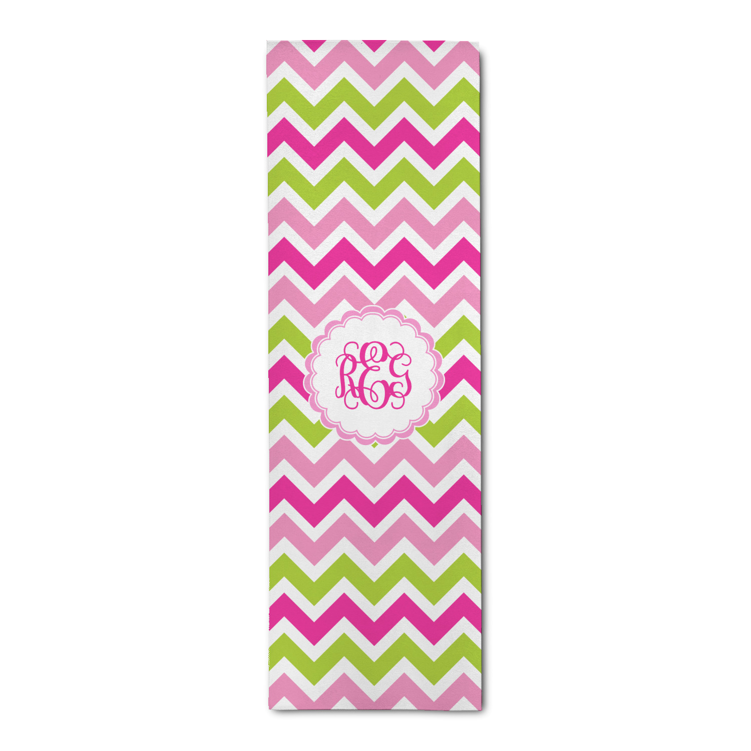 Looking for a girly girl design. This pink and green chevron print with a scalloped label and an interlocking monogram is as girly as it gets. We have created this chevron pattern in lime green, orchid pink and hot pink. For all of us girly girls and princesses, this is our design choice!