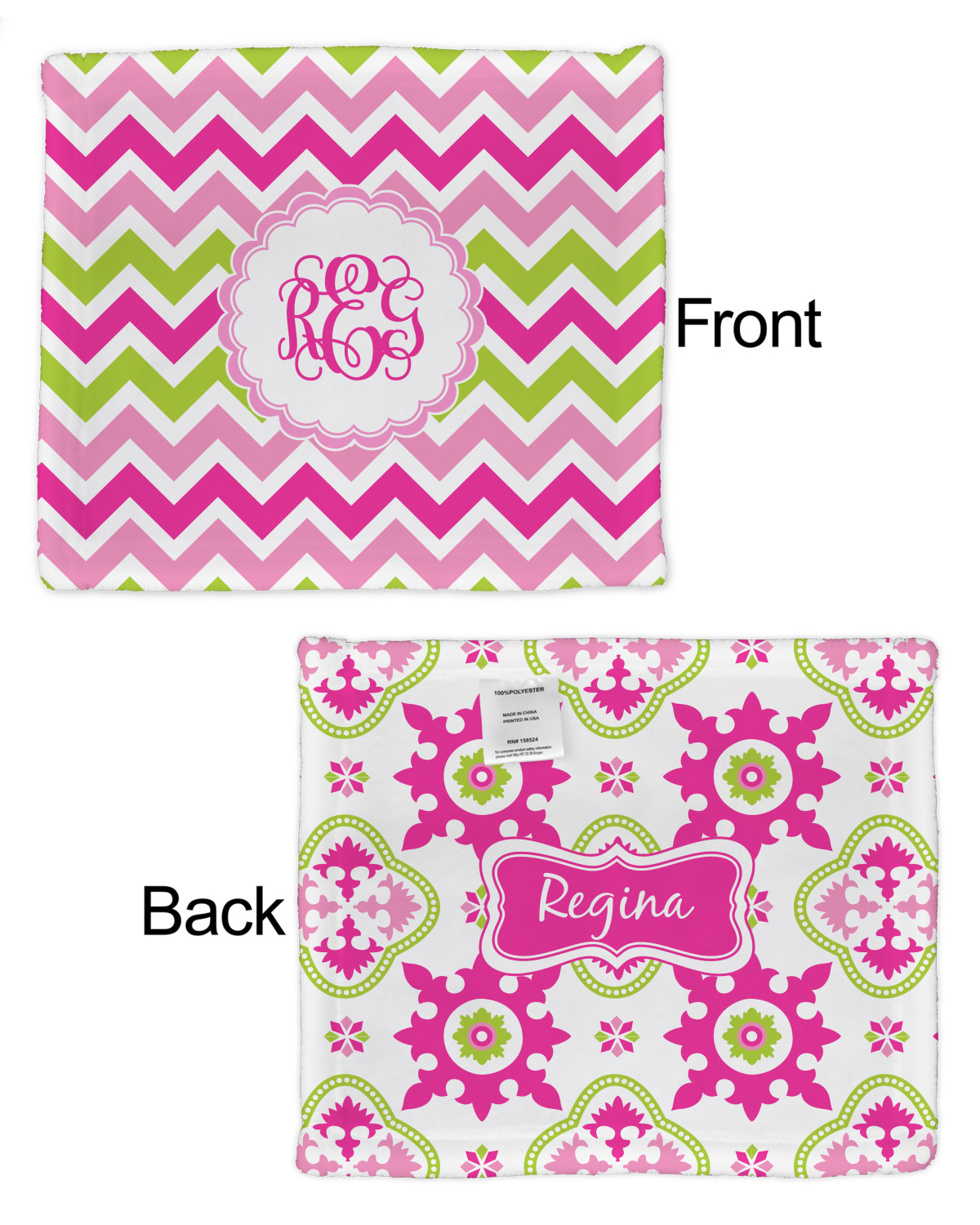 Our customized security AKA lovey blankets are available in 2 print styles - single sided or double sided. You can customize both the front and the back of the lovey security blankets. You have the option to choose different designs or the same design - the choice is yours.