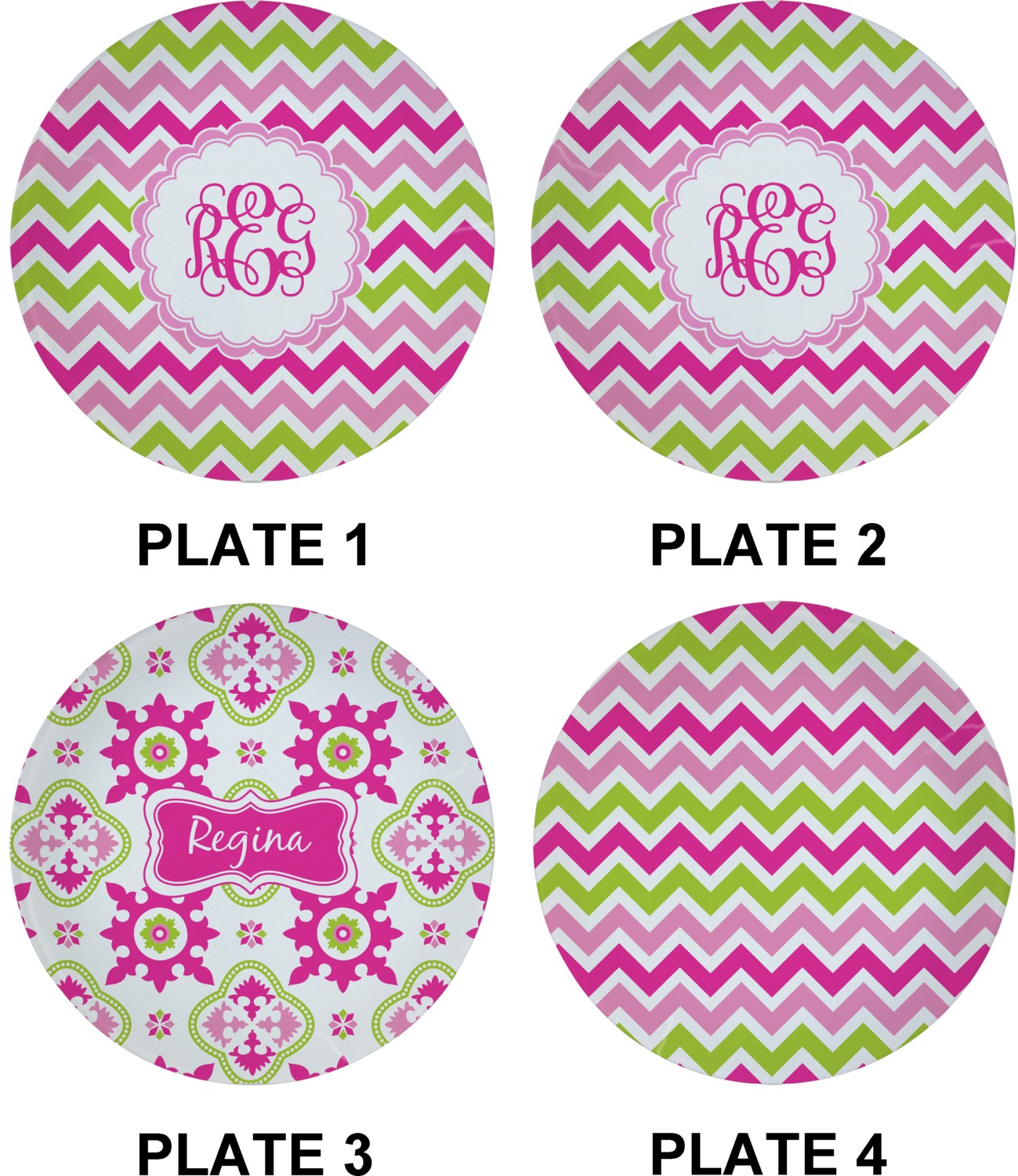 With a of designs and patterns, these plates are completely customizable. Choose a foodie design, complete with red-hot chili peppers, or go classic with stripes or plaid. Include your monogram or family name to make sure these plates never get lost at parties!