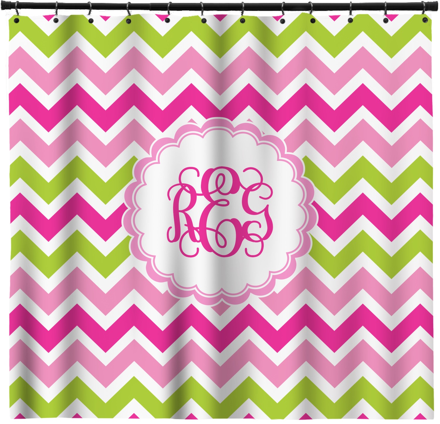 Looking for a girly girl design. This pink and green chevron print with a scalloped label and an interlocking monogram is as girly as it gets. We have created this chevron pattern in lime green, orchid pink and hot pink. For all of us girly girls and princesses, this is our design choice!