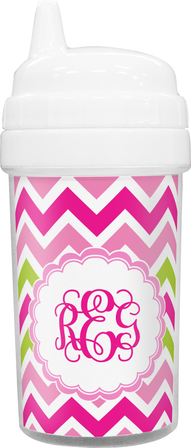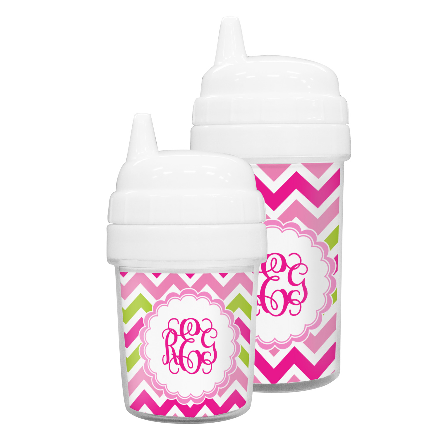 Our toddler cups are free of BPA, and have a twist-open lid so that you can easily fill and clean these cups for your young ones. Each cup also comes with a sippy nozzle to reduce spills. We offer these custom sippy cups in two different sizes; we have a baby sippy cup that holds 5 ounces, and a toddler sippy cup that holds 10 ounces. Your customization is printed on a premium glossy media insert that is placed within these toddler drinking cups.