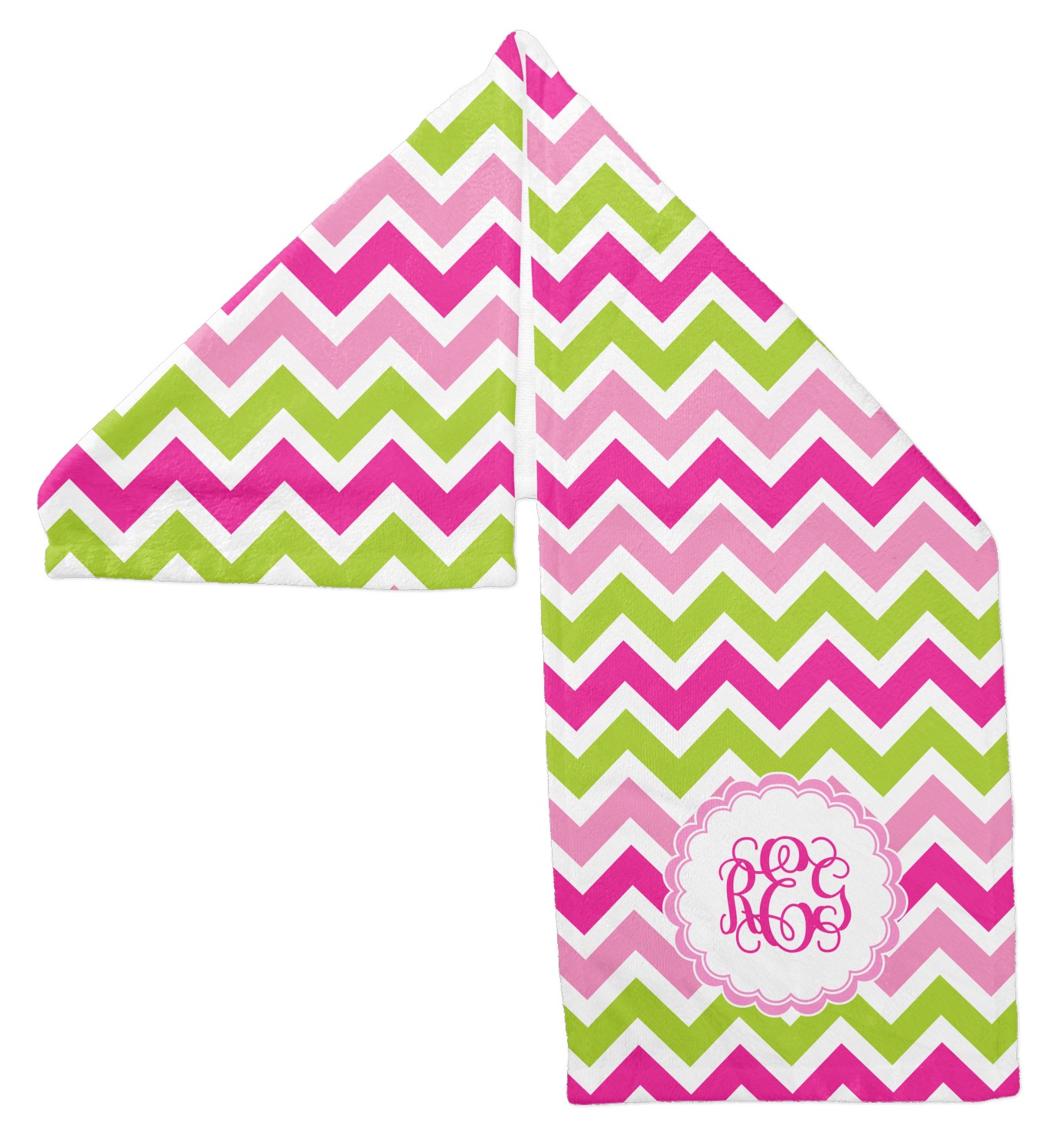 Looking for a girly girl design. This pink and green chevron print with a scalloped label and an interlocking monogram is as girly as it gets. We have created this chevron pattern in lime green, orchid pink and hot pink. For all of us girly girls and princesses, this is our design choice!