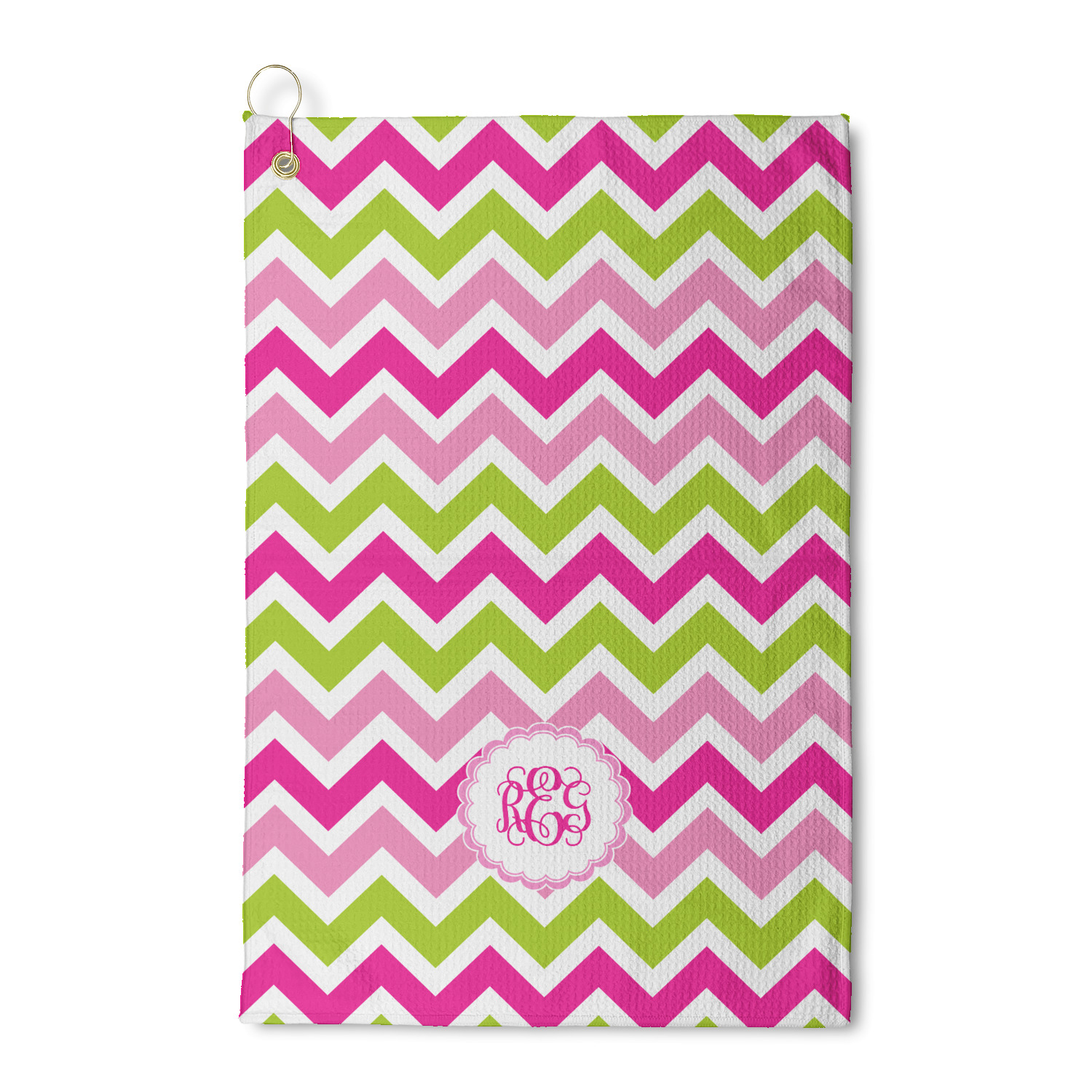 Looking for a girly girl design. This pink and green chevron print with a scalloped label and an interlocking monogram is as girly as it gets. We have created this chevron pattern in lime green, orchid pink and hot pink. For all of us girly girls and princesses, this is our design choice!