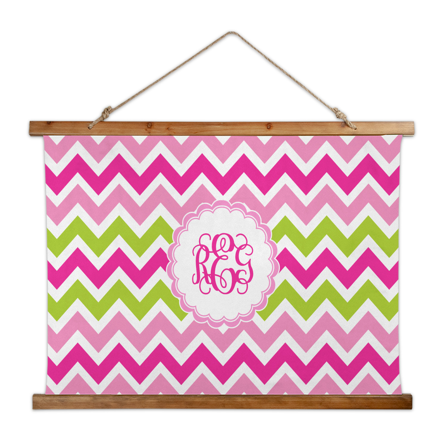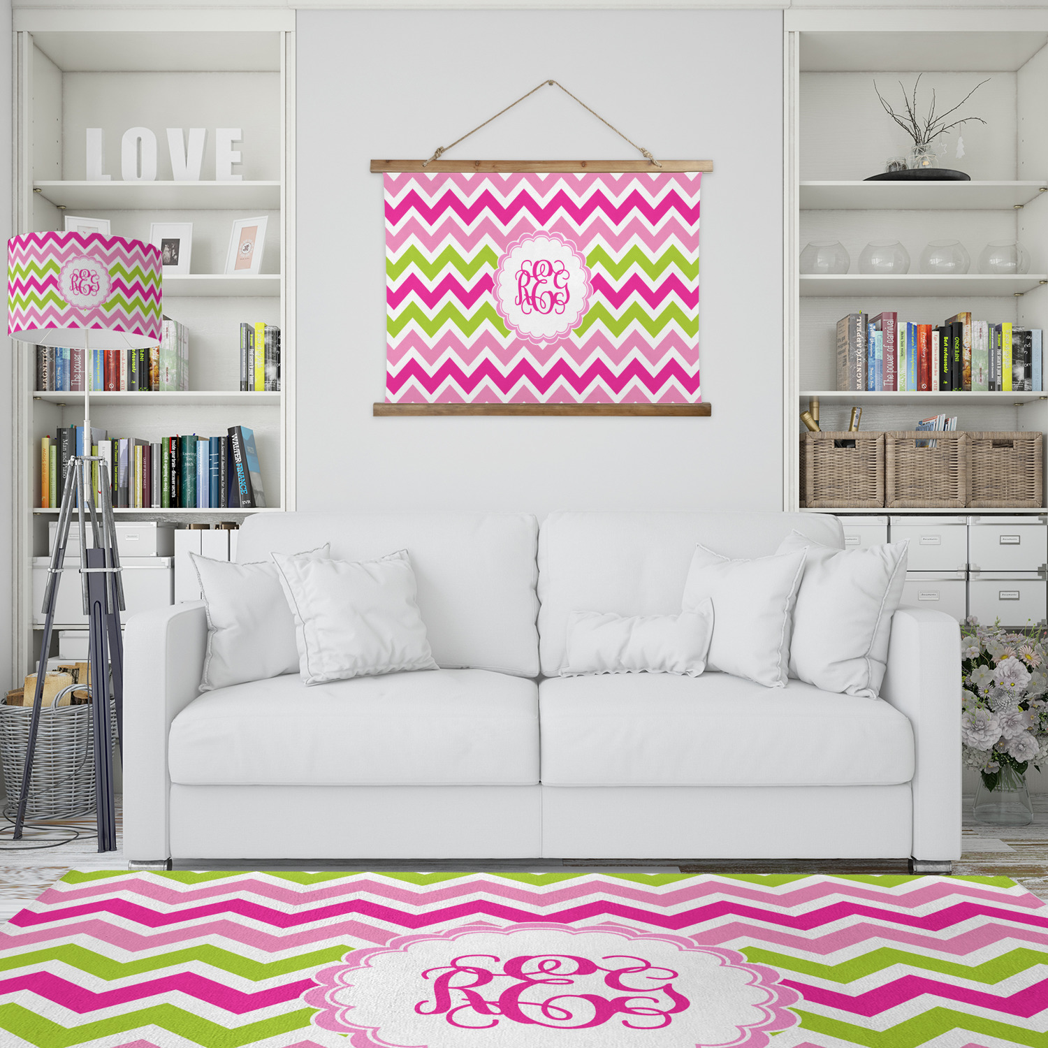 Looking for a girly girl design. This pink and green chevron print with a scalloped label and an interlocking monogram is as girly as it gets. We have created this chevron pattern in lime green, orchid pink and hot pink. For all of us girly girls and princesses, this is our design choice!