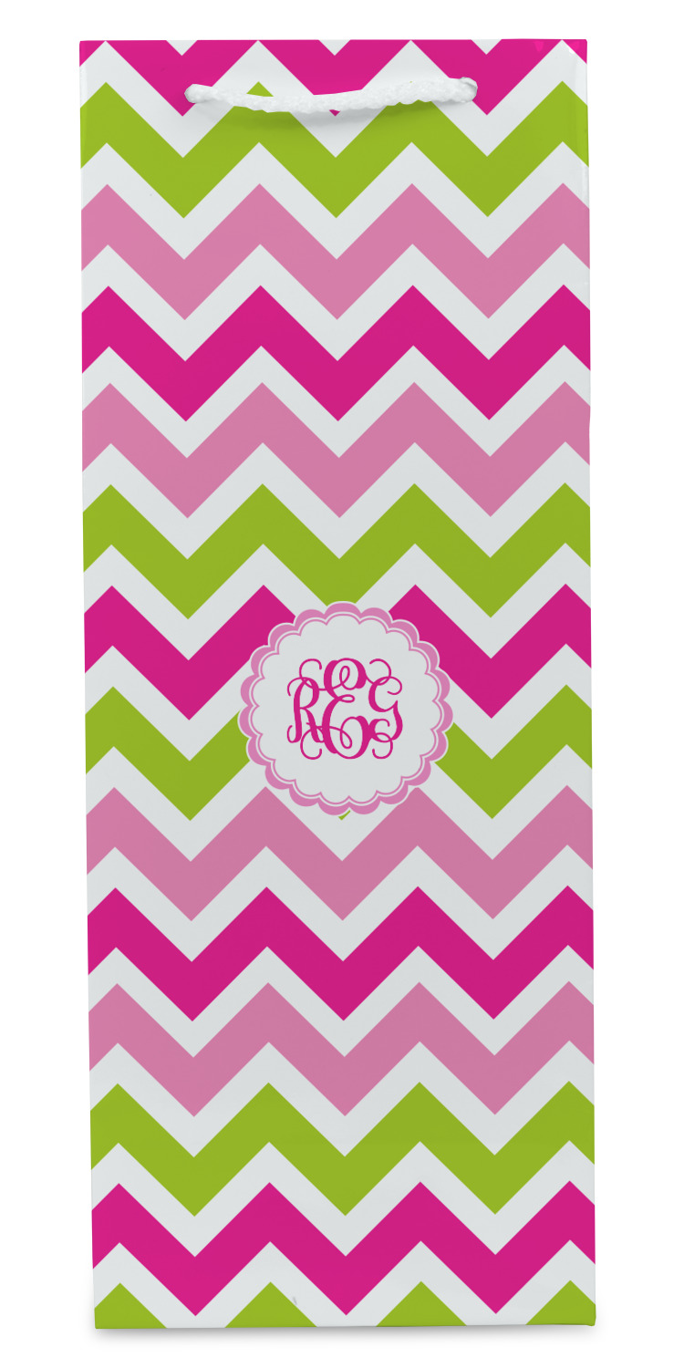 Looking for a girly girl design. This pink and green chevron print with a scalloped label and an interlocking monogram is as girly as it gets. We have created this chevron pattern in lime green, orchid pink and hot pink. For all of us girly girls and princesses, this is our design choice!