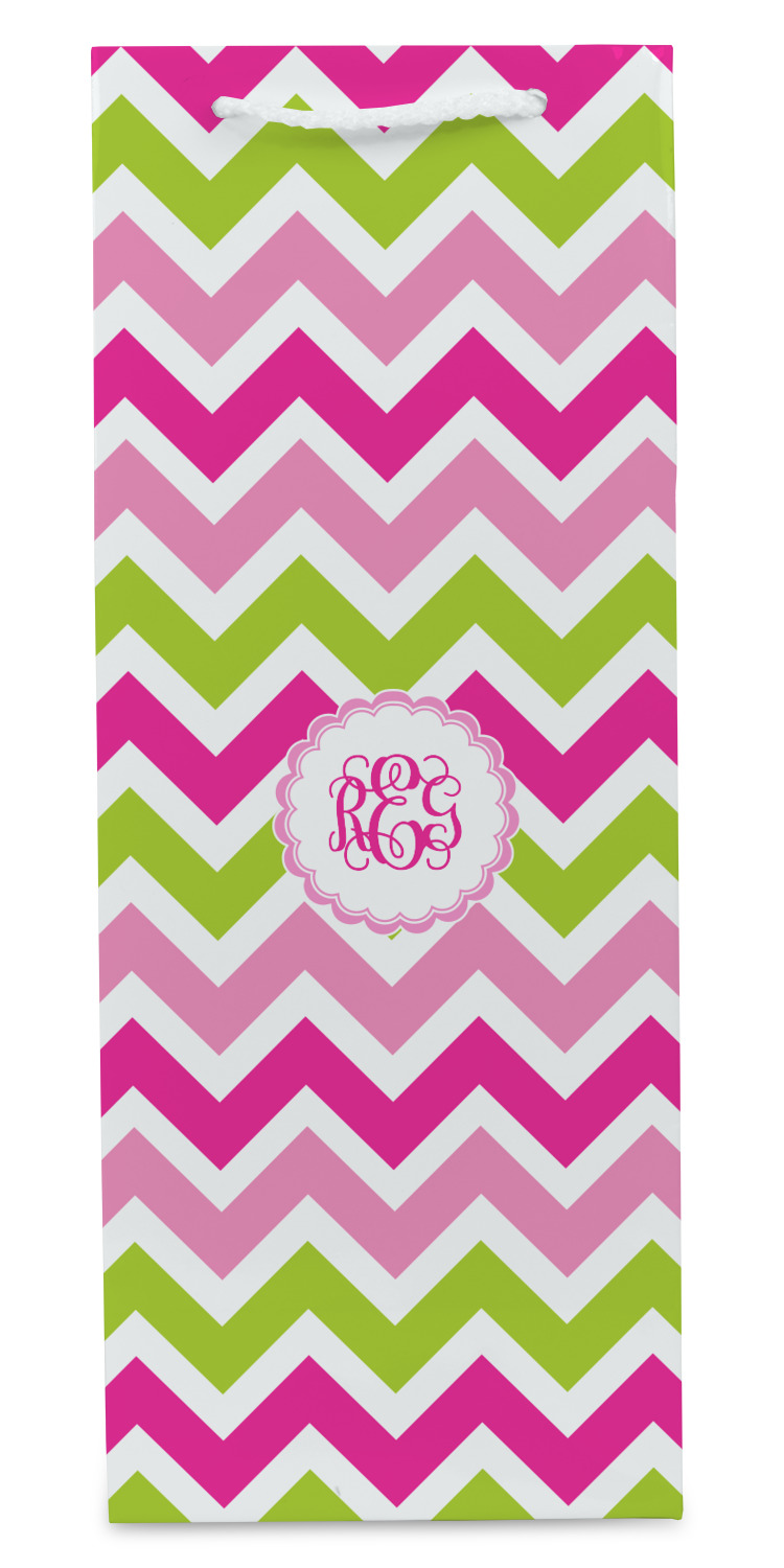 Looking for a girly girl design. This pink and green chevron print with a scalloped label and an interlocking monogram is as girly as it gets. We have created this chevron pattern in lime green, orchid pink and hot pink. For all of us girly girls and princesses, this is our design choice!