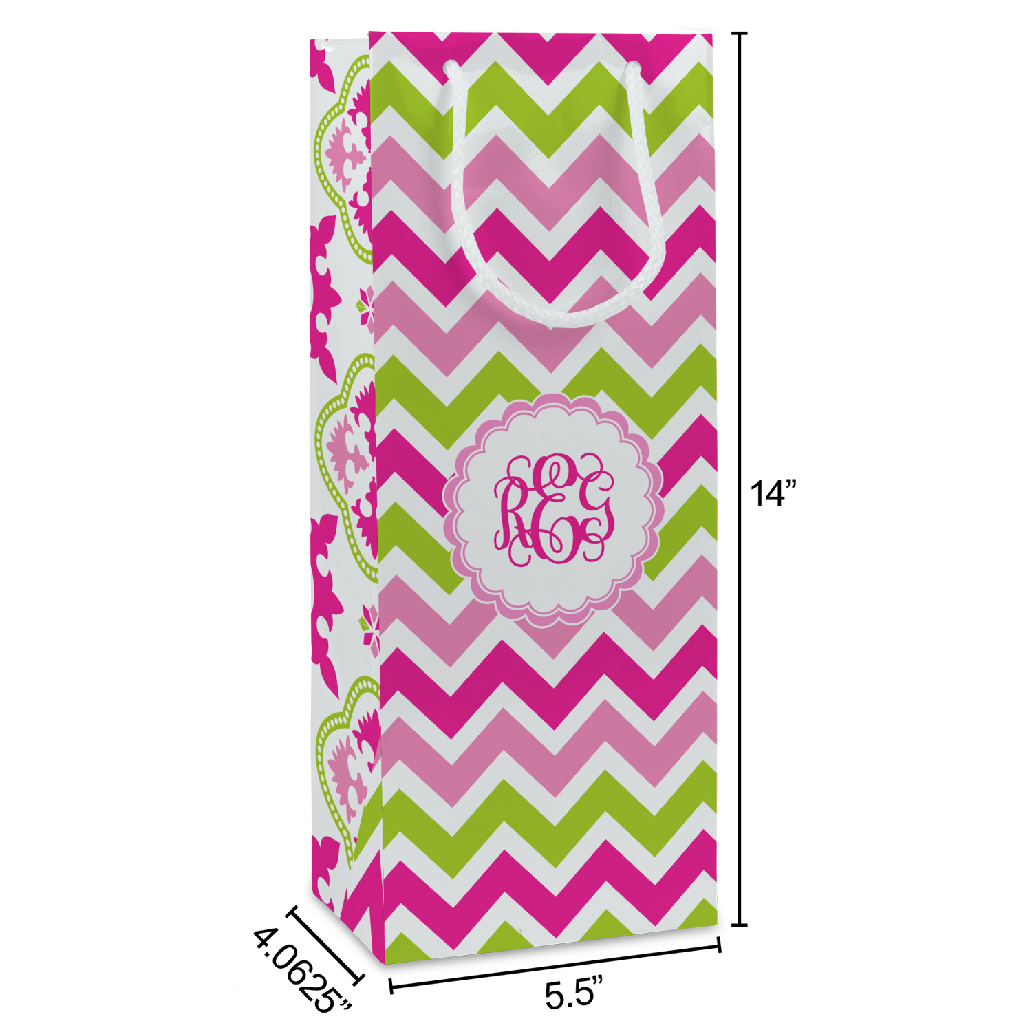 Looking for a girly girl design. This pink and green chevron print with a scalloped label and an interlocking monogram is as girly as it gets. We have created this chevron pattern in lime green, orchid pink and hot pink. For all of us girly girls and princesses, this is our design choice!