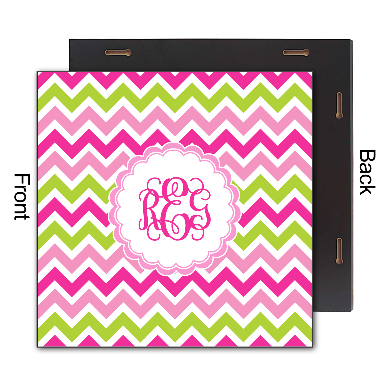 Looking for a girly girl design. This pink and green chevron print with a scalloped label and an interlocking monogram is as girly as it gets. We have created this chevron pattern in lime green, orchid pink and hot pink. For all of us girly girls and princesses, this is our design choice!