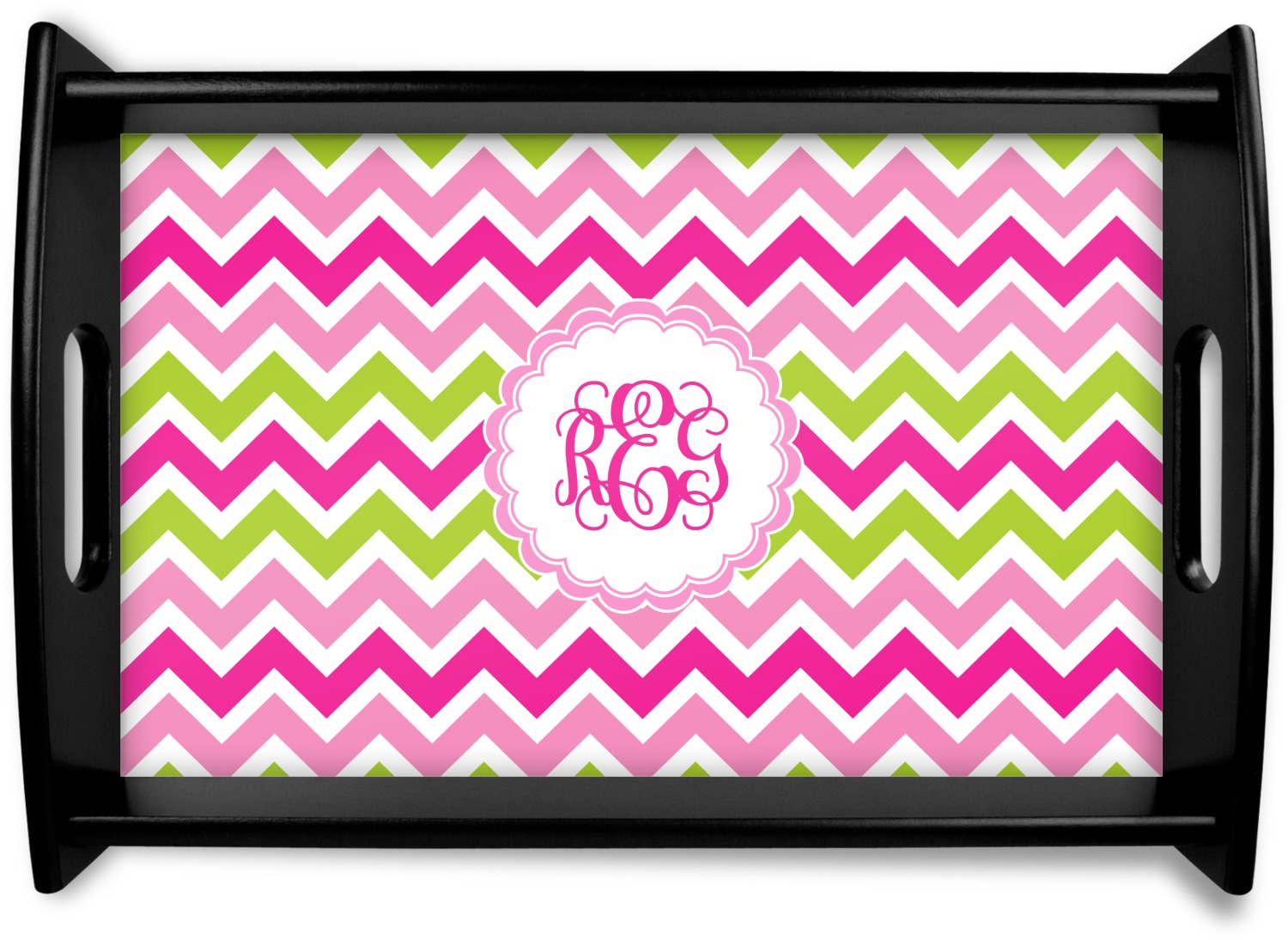 Looking for a girly girl design. This pink and green chevron print with a scalloped label and an interlocking monogram is as girly as it gets. We have created this chevron pattern in lime green, orchid pink and hot pink. For all of us girly girls and princesses, this is our design choice!