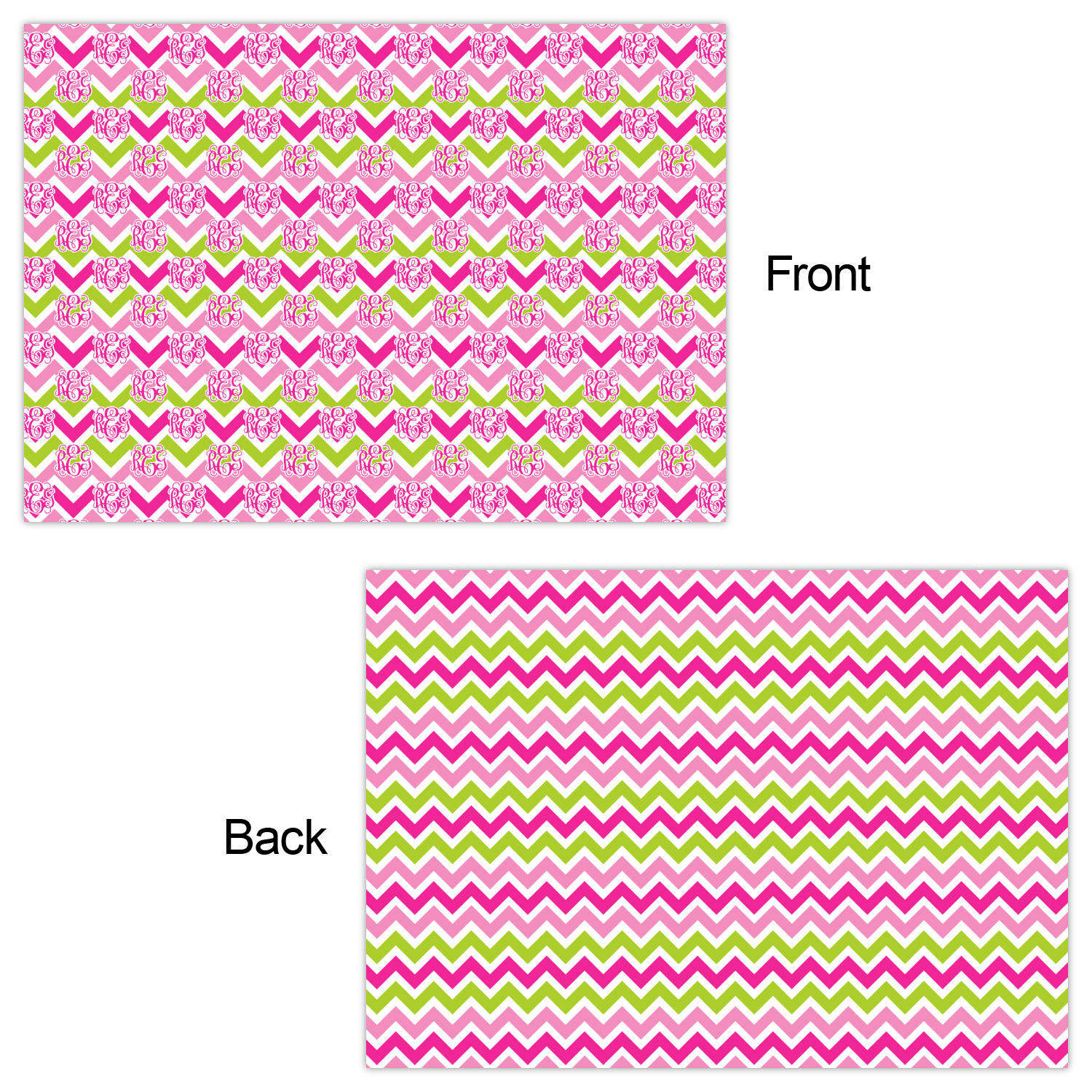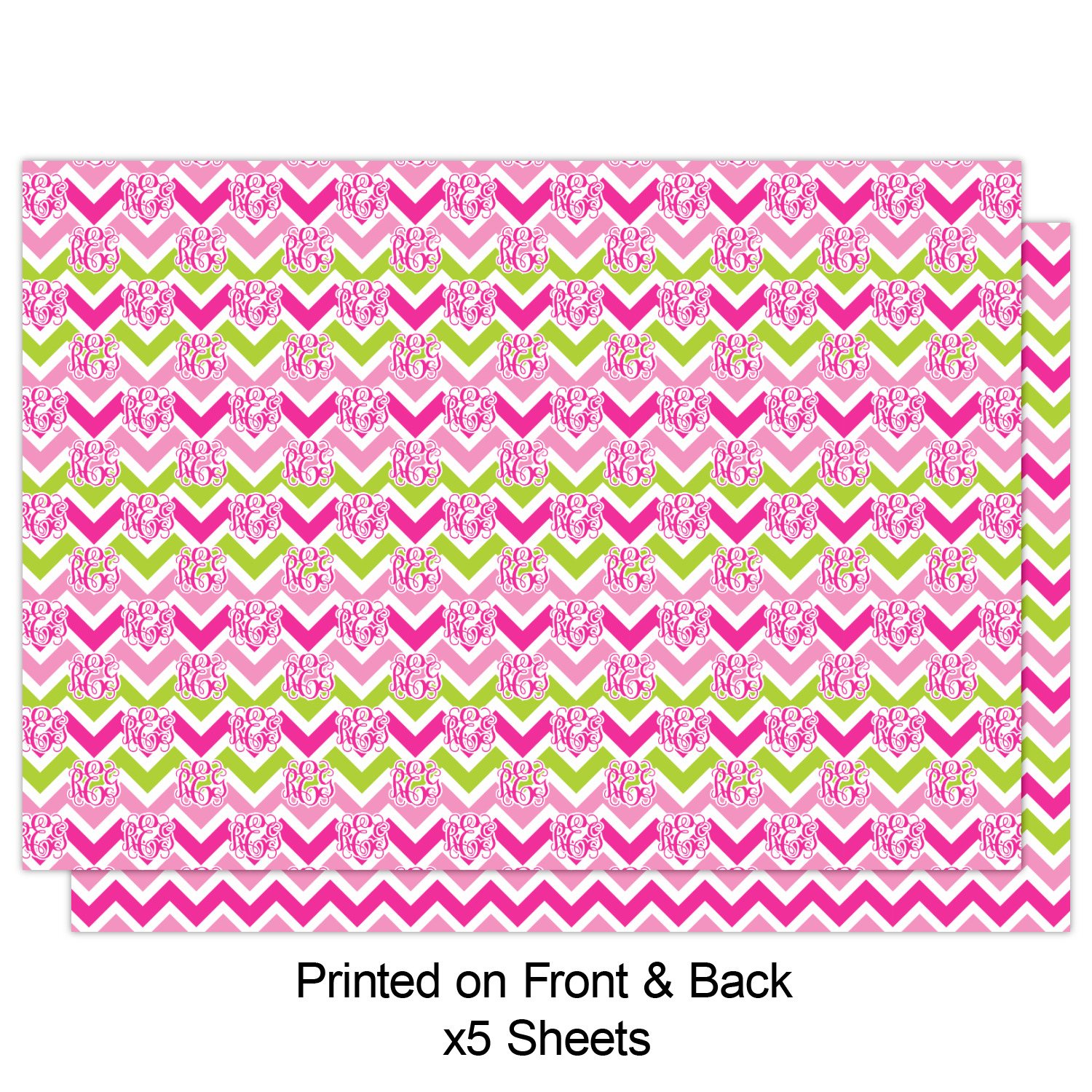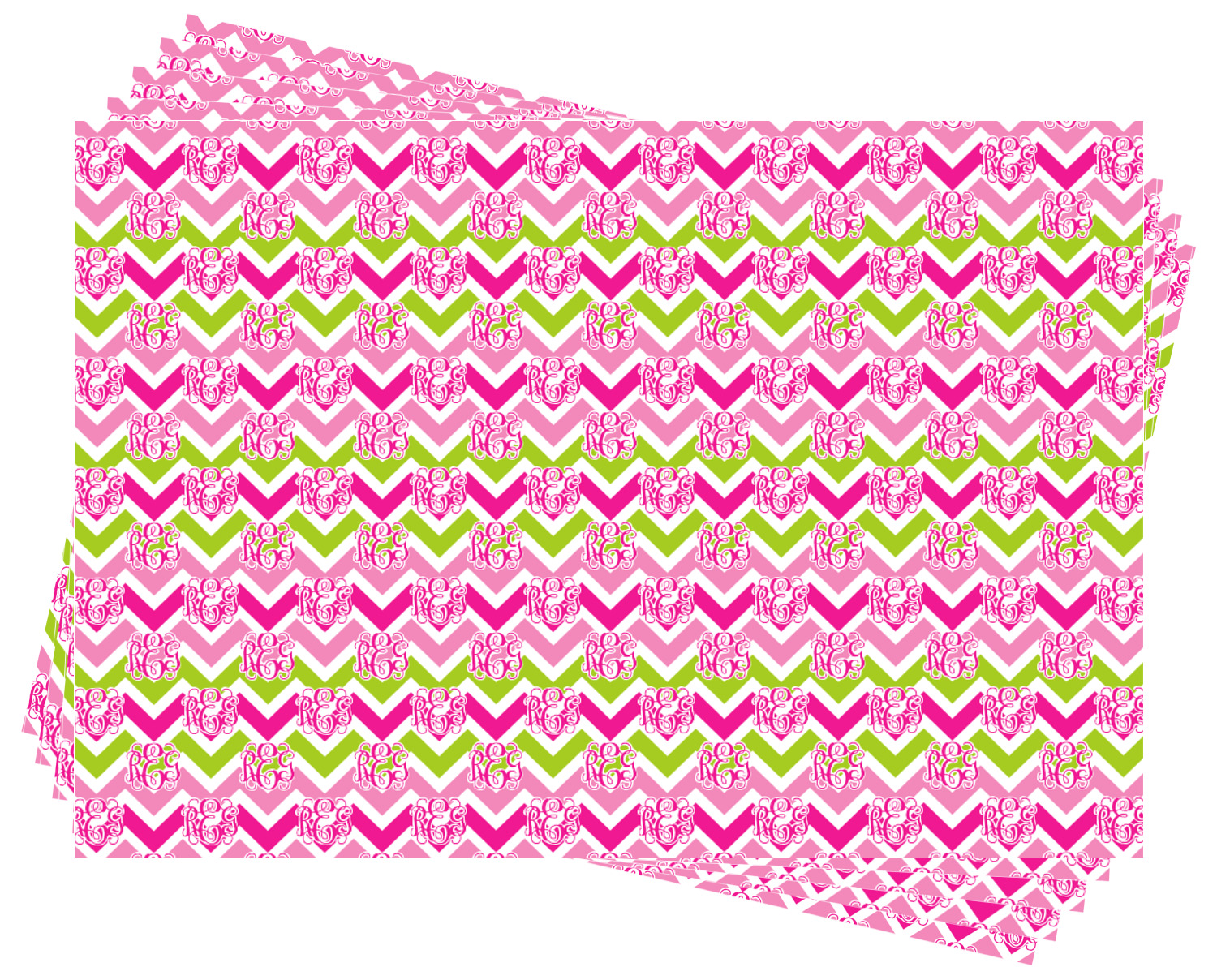 Looking for a girly girl design. This pink and green chevron print with a scalloped label and an interlocking monogram is as girly as it gets. We have created this chevron pattern in lime green, orchid pink and hot pink. For all of us girly girls and princesses, this is our design choice!