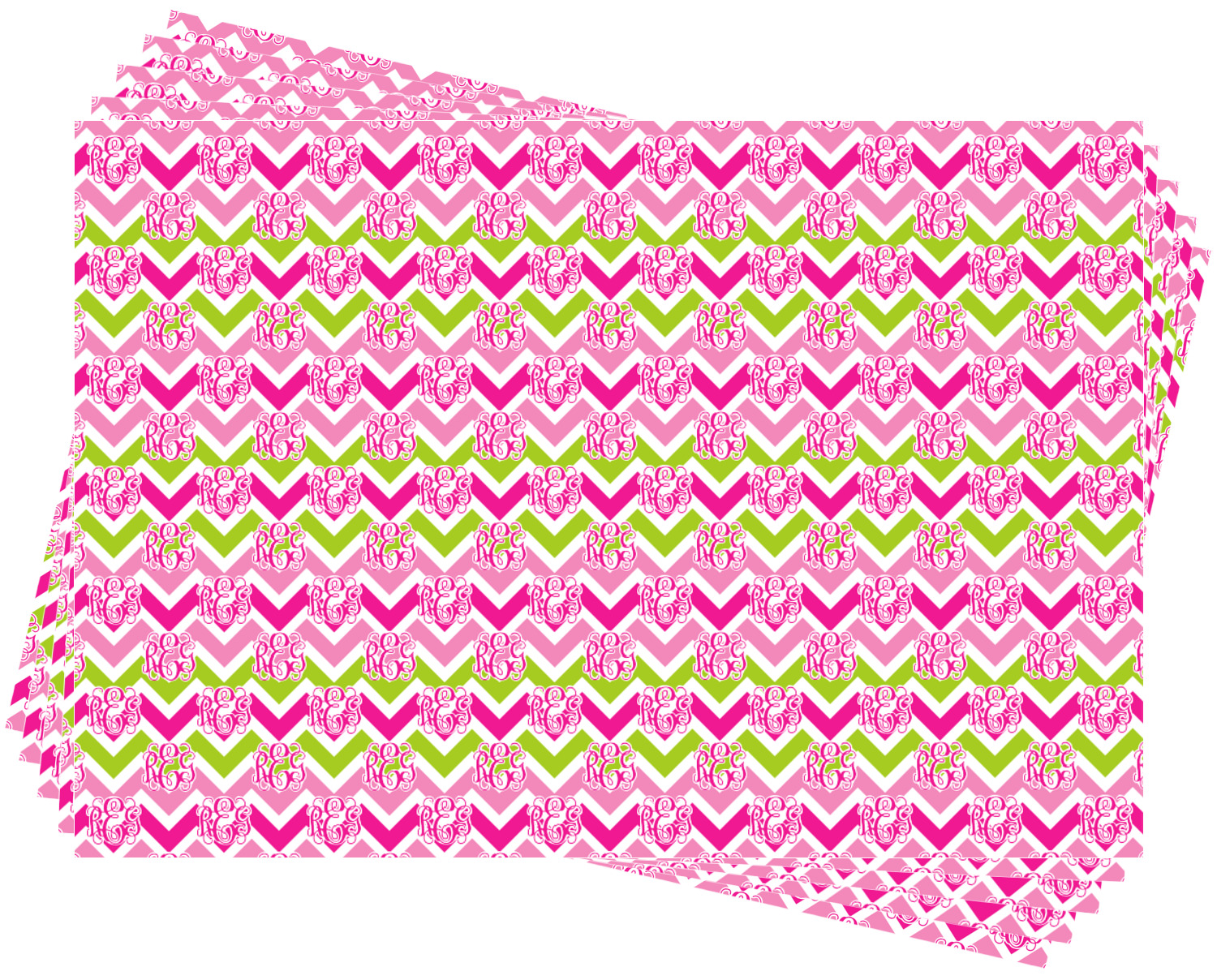 Looking for a girly girl design. This pink and green chevron print with a scalloped label and an interlocking monogram is as girly as it gets. We have created this chevron pattern in lime green, orchid pink and hot pink. For all of us girly girls and princesses, this is our design choice!