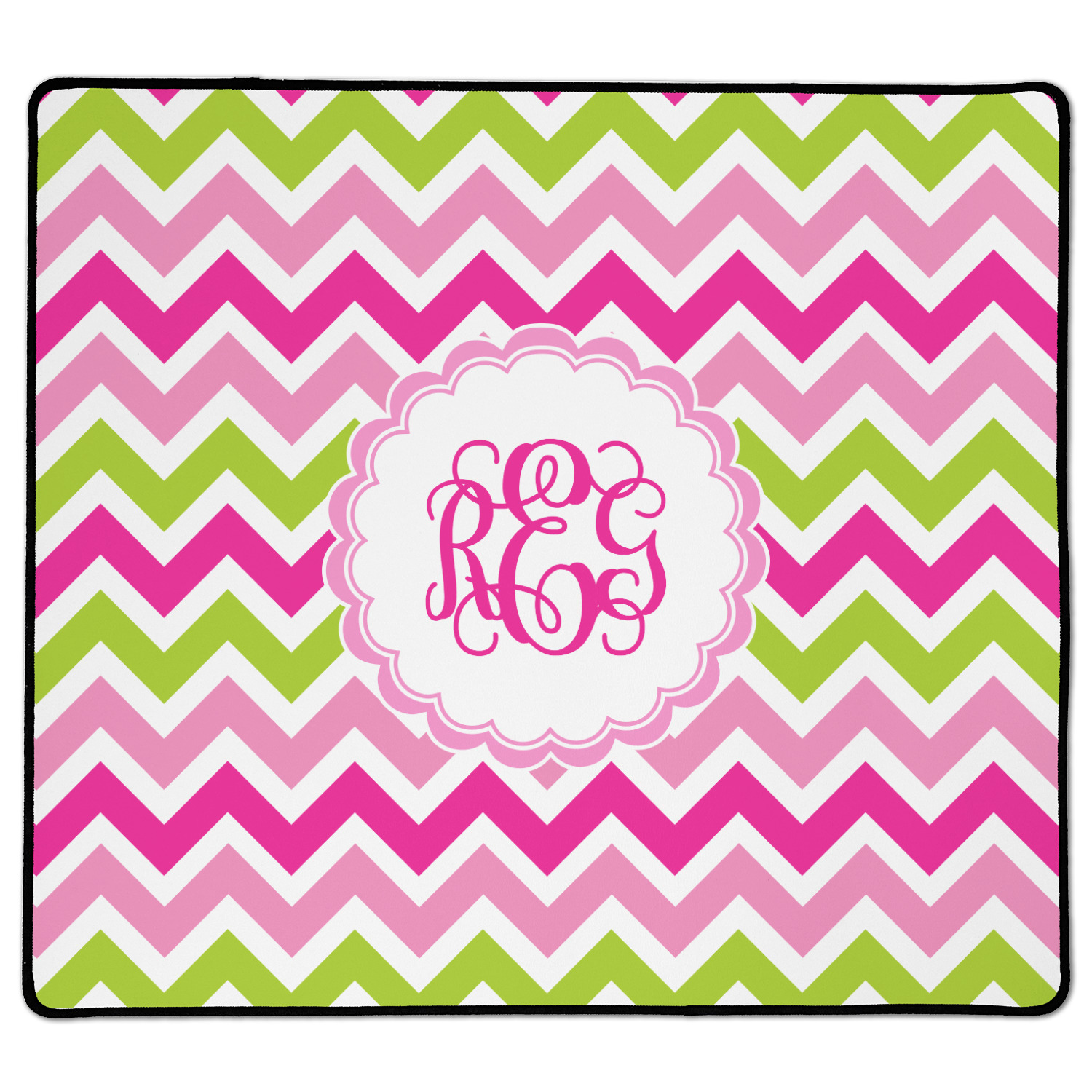 Looking for a girly girl design. This pink and green chevron print with a scalloped label and an interlocking monogram is as girly as it gets. We have created this chevron pattern in lime green, orchid pink and hot pink. For all of us girly girls and princesses, this is our design choice!