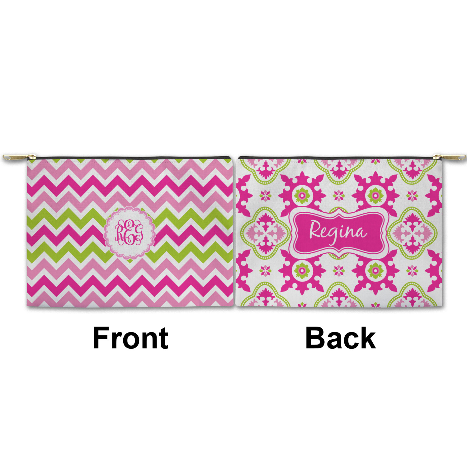 You can design both the front and the back of the pouch - same design, two complementary designs or two totally different designs - the choice is yours! We offer many different personalization styles i.e. name, name & initial, monograms - so the choice to personalize is also yours.