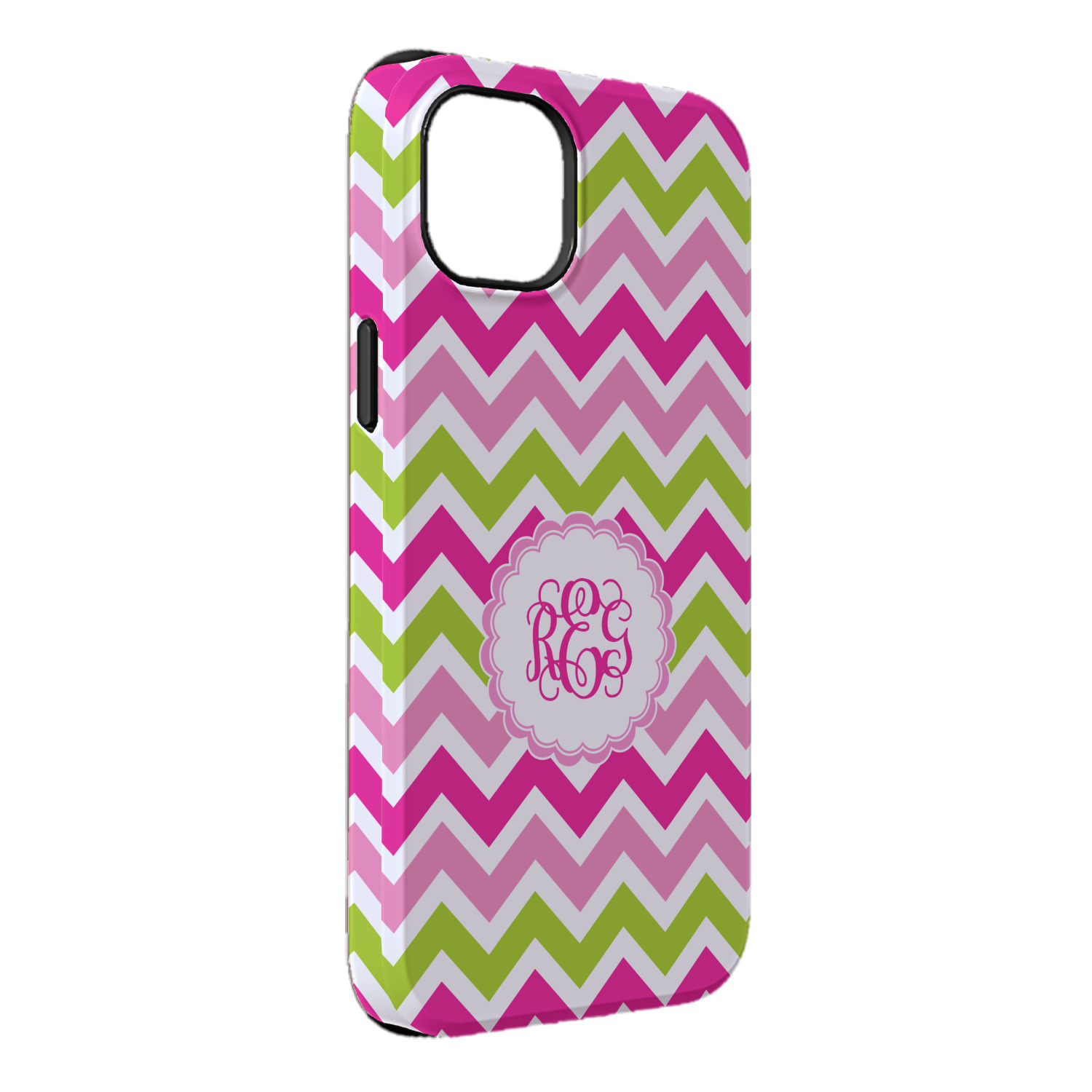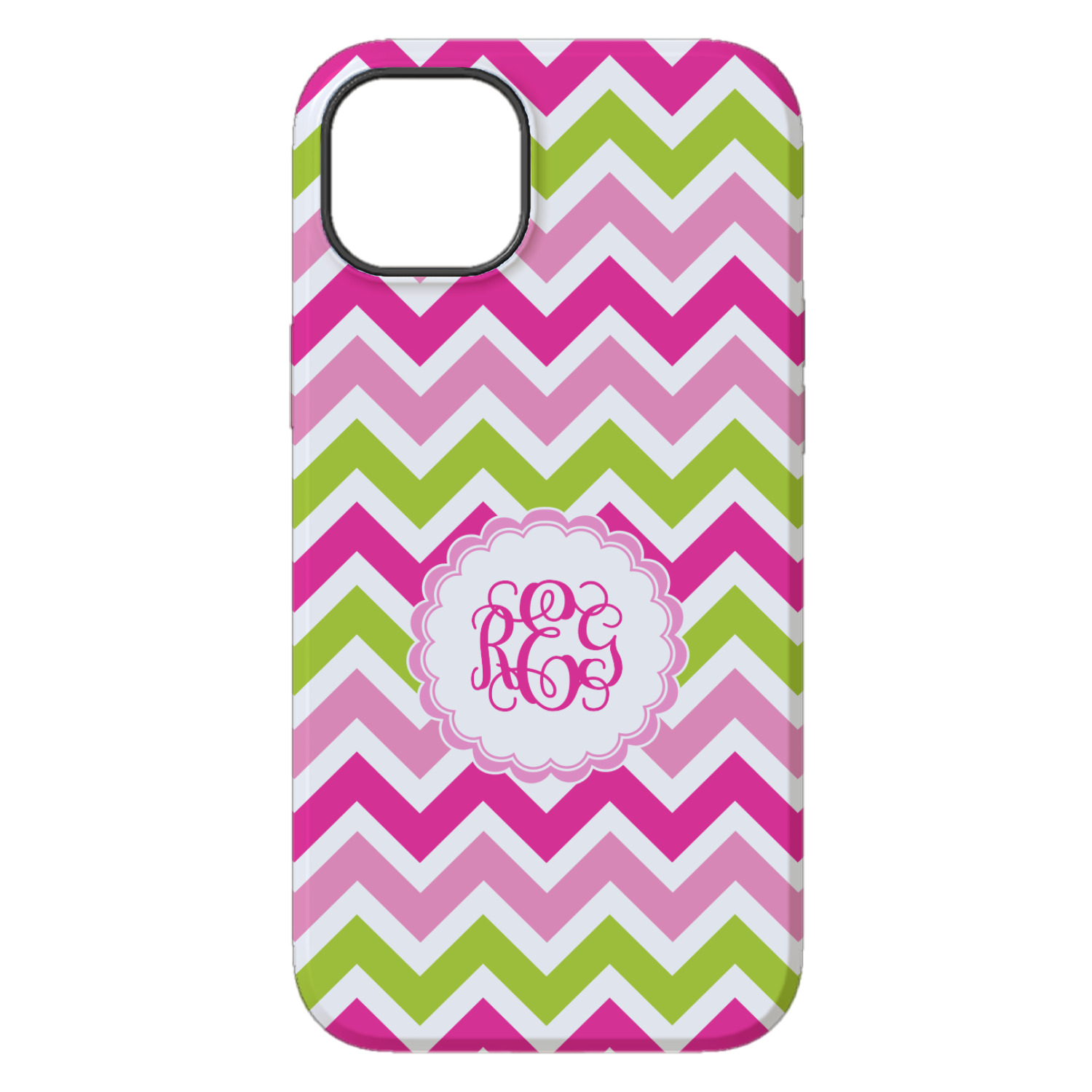 Looking for a girly girl design. This pink and green chevron print with a scalloped label and an interlocking monogram is as girly as it gets. We have created this chevron pattern in lime green, orchid pink and hot pink. For all of us girly girls and princesses, this is our design choice!