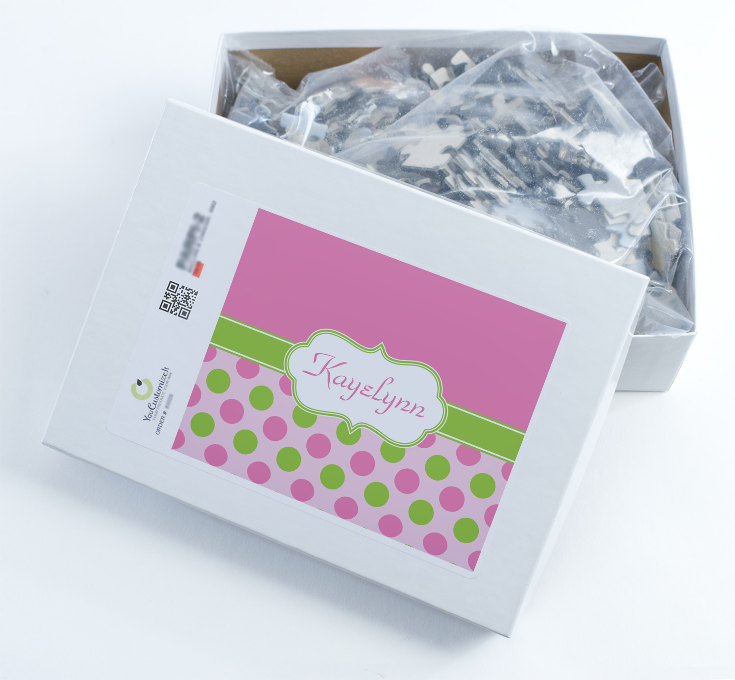 We print our puzzles on thick white chipboard in vibrant colors, then laminate the chipboard and die cut your puzzle. Your jigsaw puzzle is shipped to you in a box with the image of the puzzle on the box.