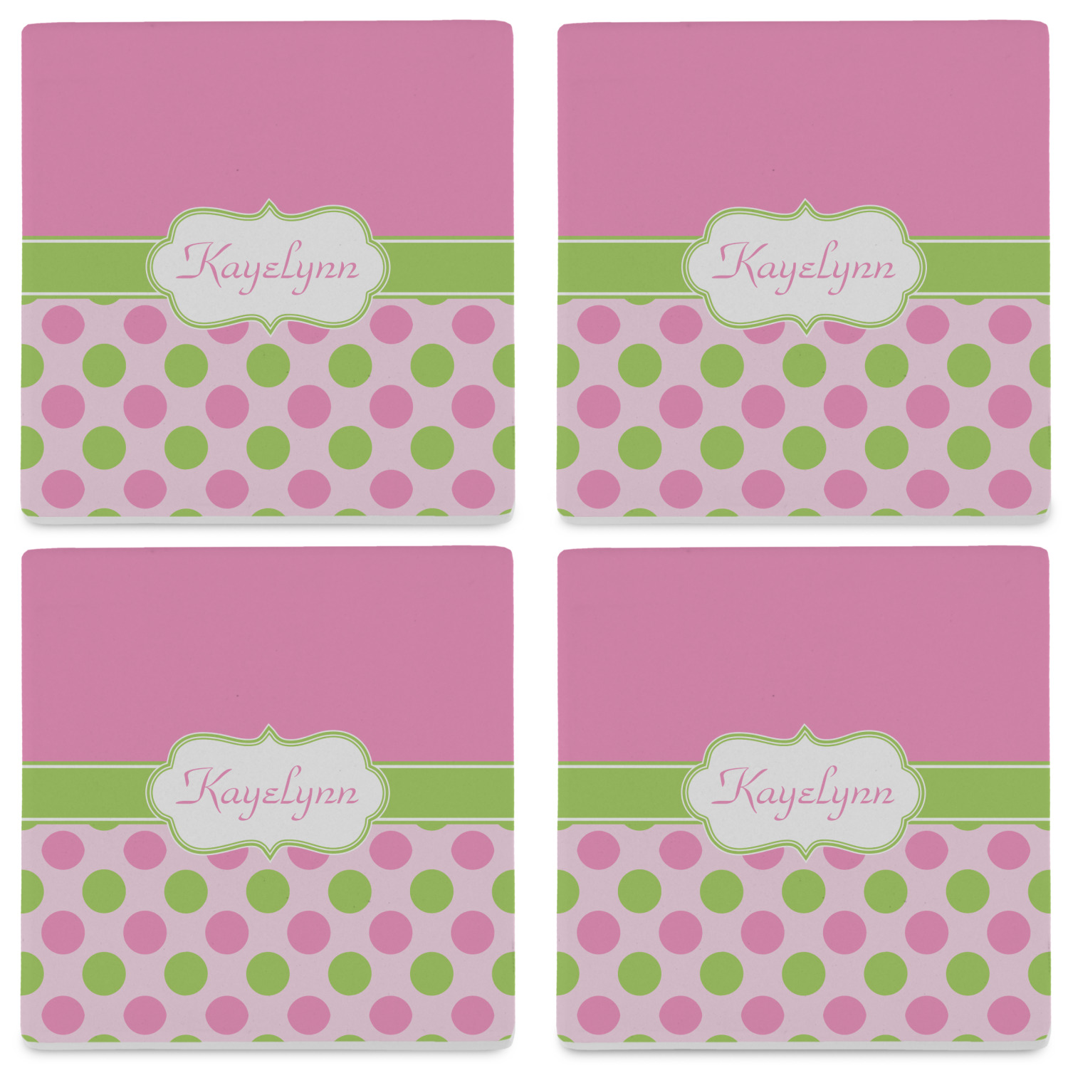 By default, the 4 coasters all have the same design on them, however, you can change that and have a different design on each one of the 4 coasters. The choice is yours.