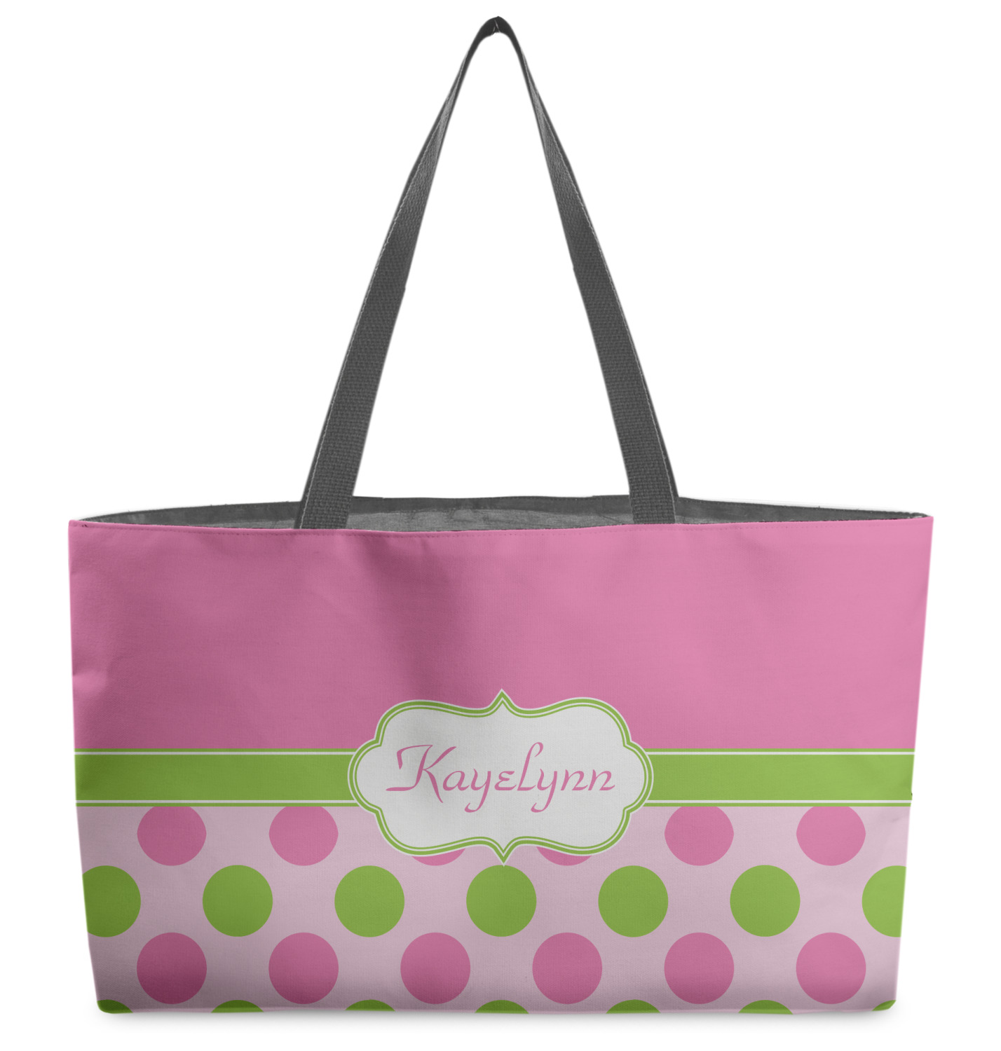 These beach totes are handmade here in the USA. Fabric is printed with your design. The tote is then sewn from the fabric pieces, lining and handles added.