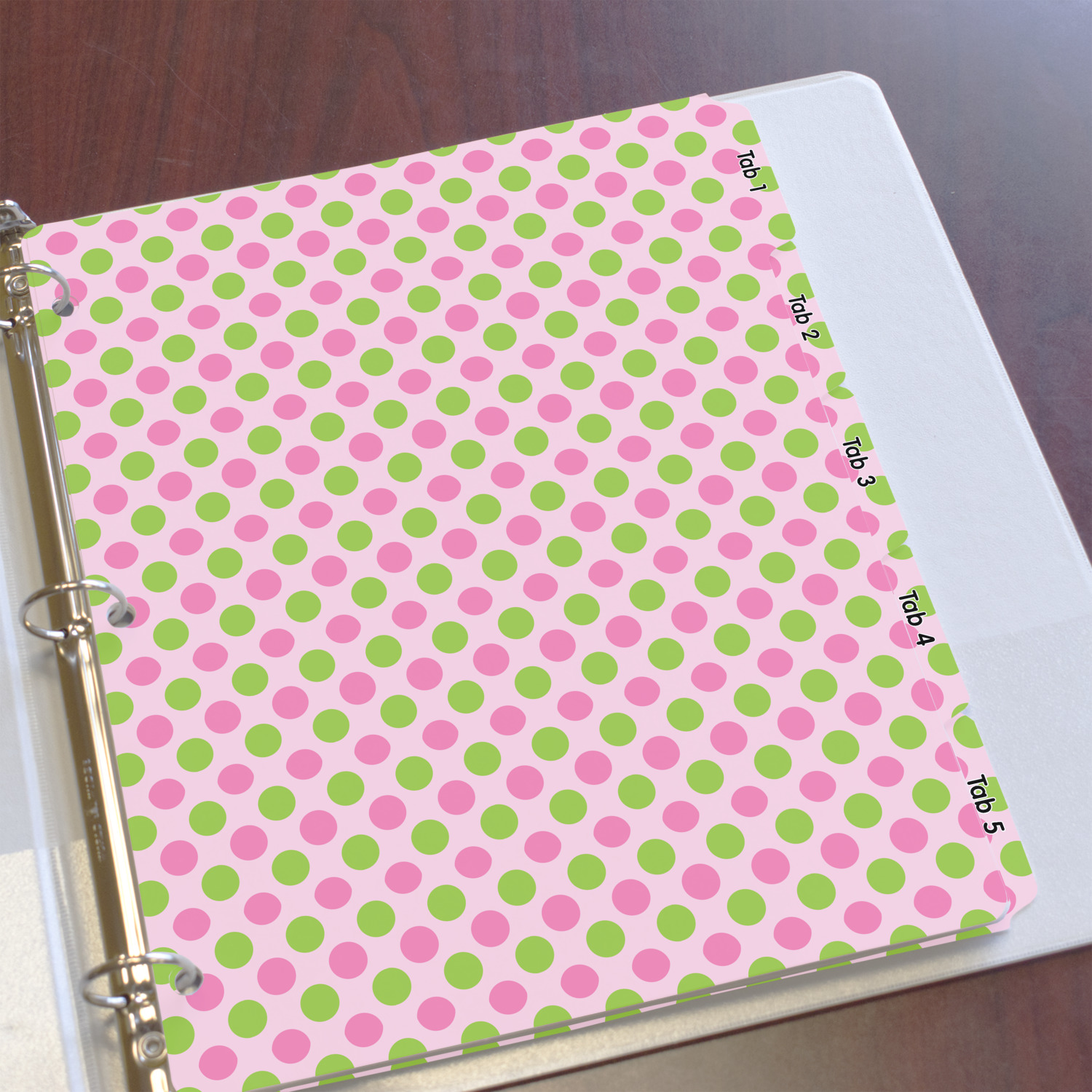 Whether you use binders at school or at work, we have designs to suit all of them. Available in 5 or 6 tab sets, you are sure to find a set to suit your needs. The back of each one is white and can be used to take notes, write vital information on, etc.