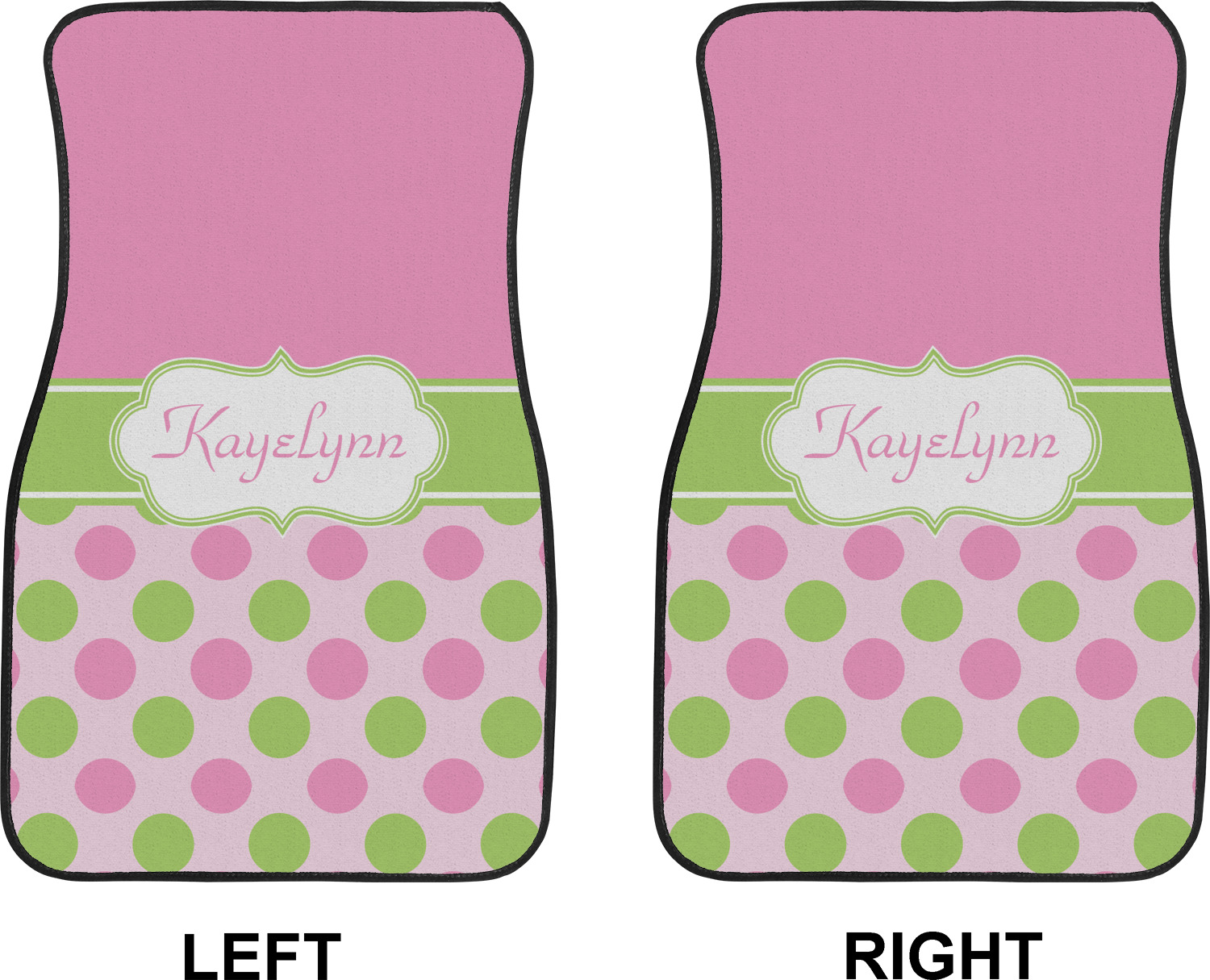We craft our auto floor mats mats from polyester, apply a black finish to the edges, and lined at the bottom to prevent slippage. These mats protect your floors from grass, mud, and any accidental spills. We display your personalized design on the front face of each mat. The sizes of these car floor liners are standardized to provide a versatile fit for all vehicles. The front rows car mats measure at 17 by 26.5 inches, while the back rows measure at 17 by 13 inches. We sell three packages of car floor mats. You can purchase a pair of front row car mats, a pair of back row car mats, or a set of front row and back row car mats. To make an informed purchase, we recommend measuring the surface area of your car floors.