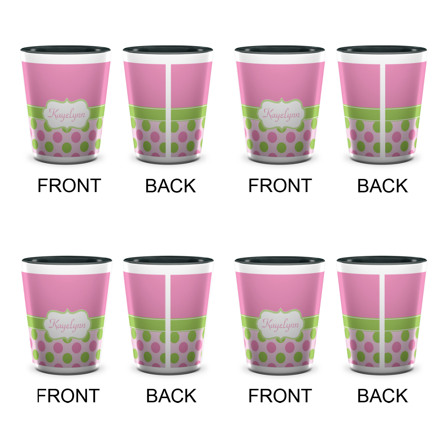 Made from ceramic these shot glasses are printed in full color with the design of your choice. These are a standard 1.5oz size and stand 2.25" tall. Available in a full white ceramic or a two-tone with a black color inside the shot glass. Buy a single or a set of 4, all of which can be designed separately to get you just what you want and need.