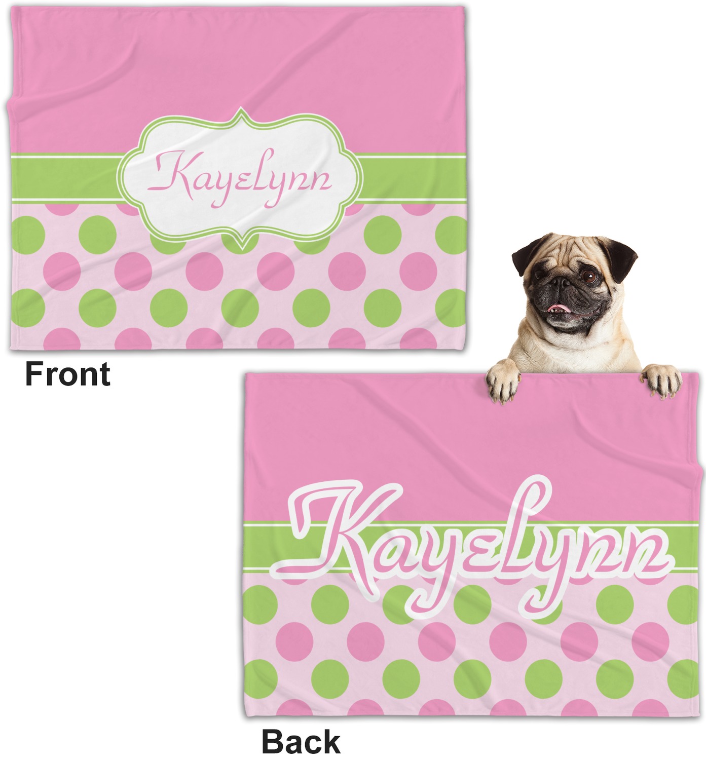 These dog blankets are crafted from a gentle, soft-to-the-touch, minky material. We print your customizations, either matching or differing, on both the top and underside of the blanket. These personalized dog blankets are available in two sizes: regular and large. Our regular size, at 40" x 30", accommodates small and some medium size dogs. At 60" x 50", our large dog blanket is a better fit for bigger breeds. Though specialized for dogs, these blankets still make a thoughtful gift for your favorite feline, or any other pet in mind!