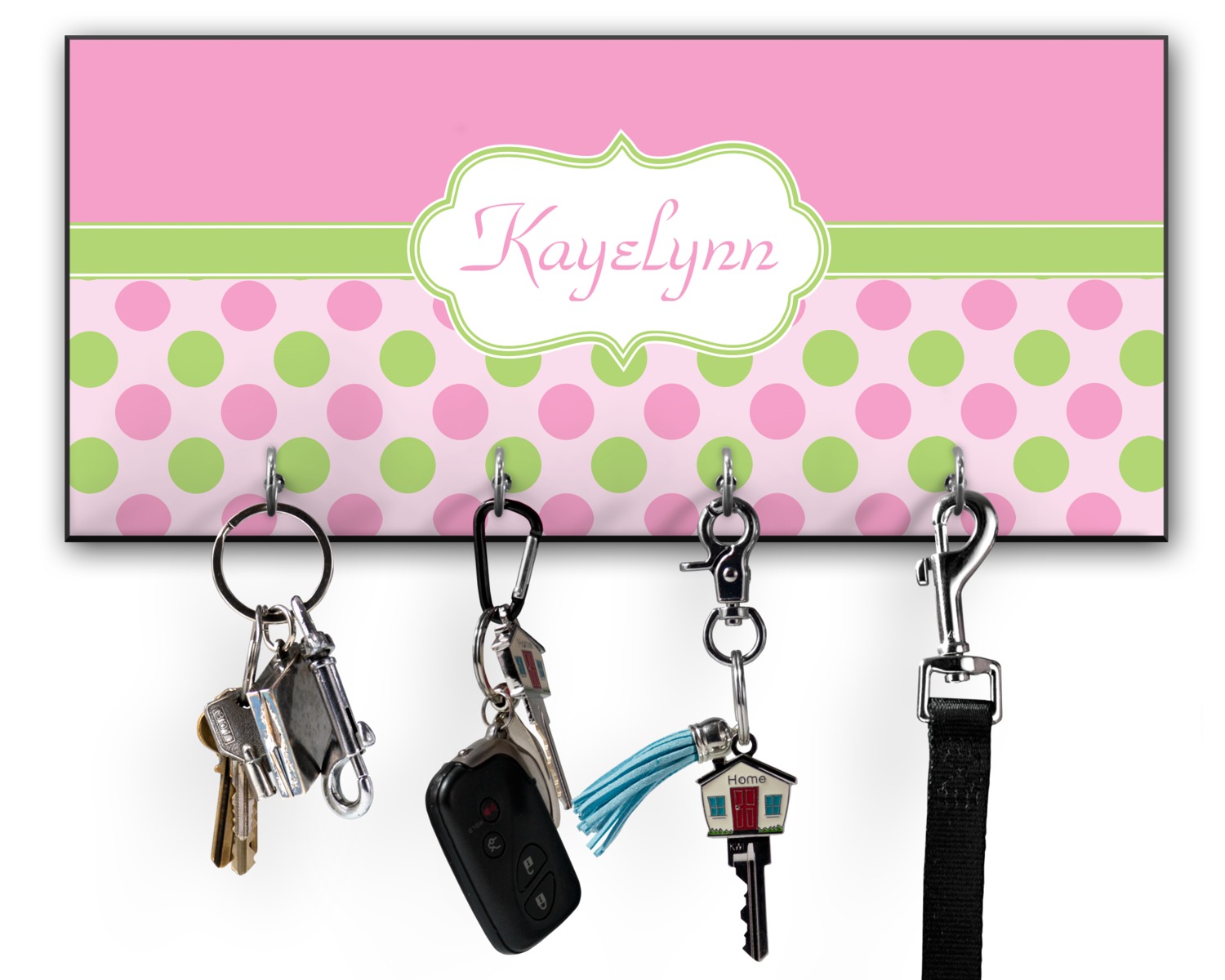 This 11" x 5" key hanger is made of sturdy wood and has four metal hooks lining the bottom. This is the perfect size for a family with several drivers. Not only can you hang keys on it though, but pet leashes and other small items. The board is black on the sides and back and is printed with the design of your choice on the front.