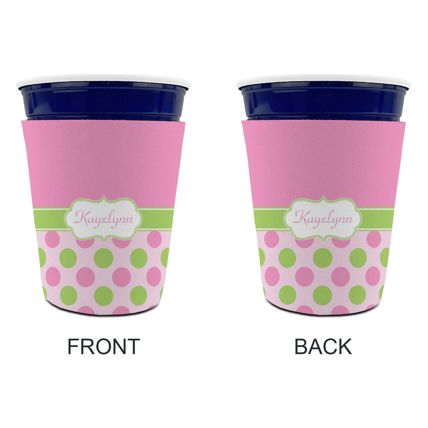 Made from neoprene with a polyester outer fabric and sewn seams, these premium quality party cup sleeves are very durable and will hold up to heavy use. They are available in 2 styles - with a bottom or just a sleeve to go around the outside of the tapered cup. The sleeve covers are about 4" tall and cover about 90% of the classic 16 oz. Solo cup.