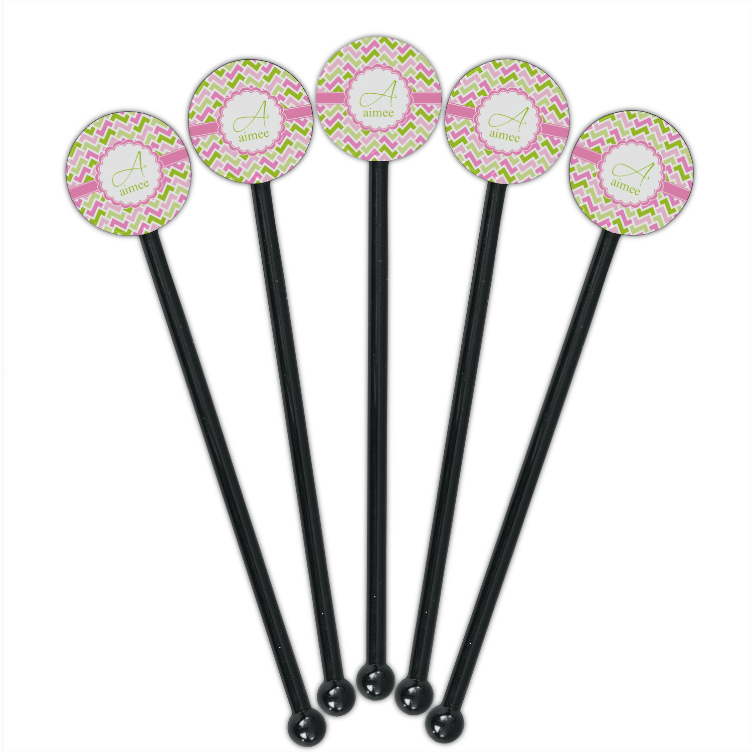 Shape + Symbol Designs for 5.5" Round Plastic Stir Sticks - Black - Single-Sided