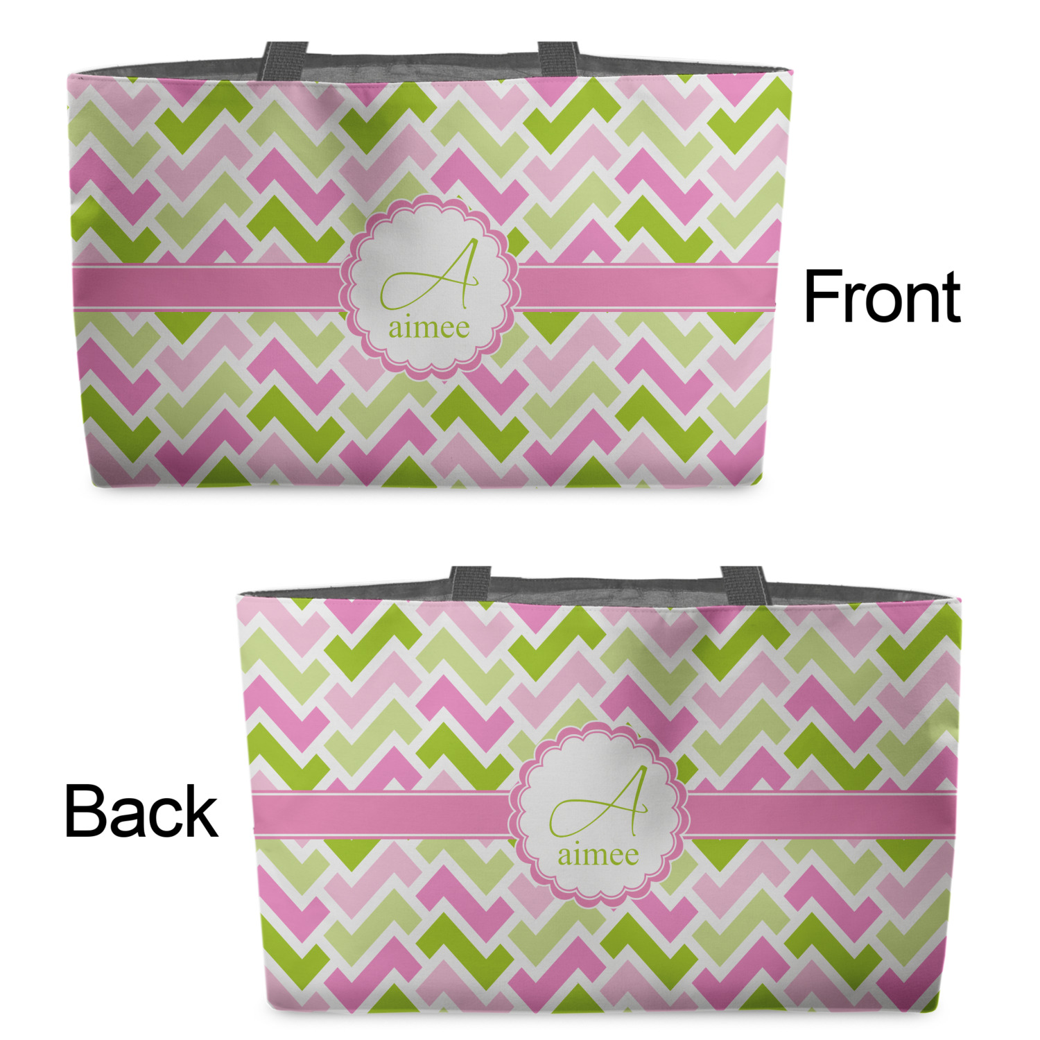 These beach totes are handmade here in the USA. Fabric is printed with your design. The tote is then sewn from the fabric pieces, lining and handles added.