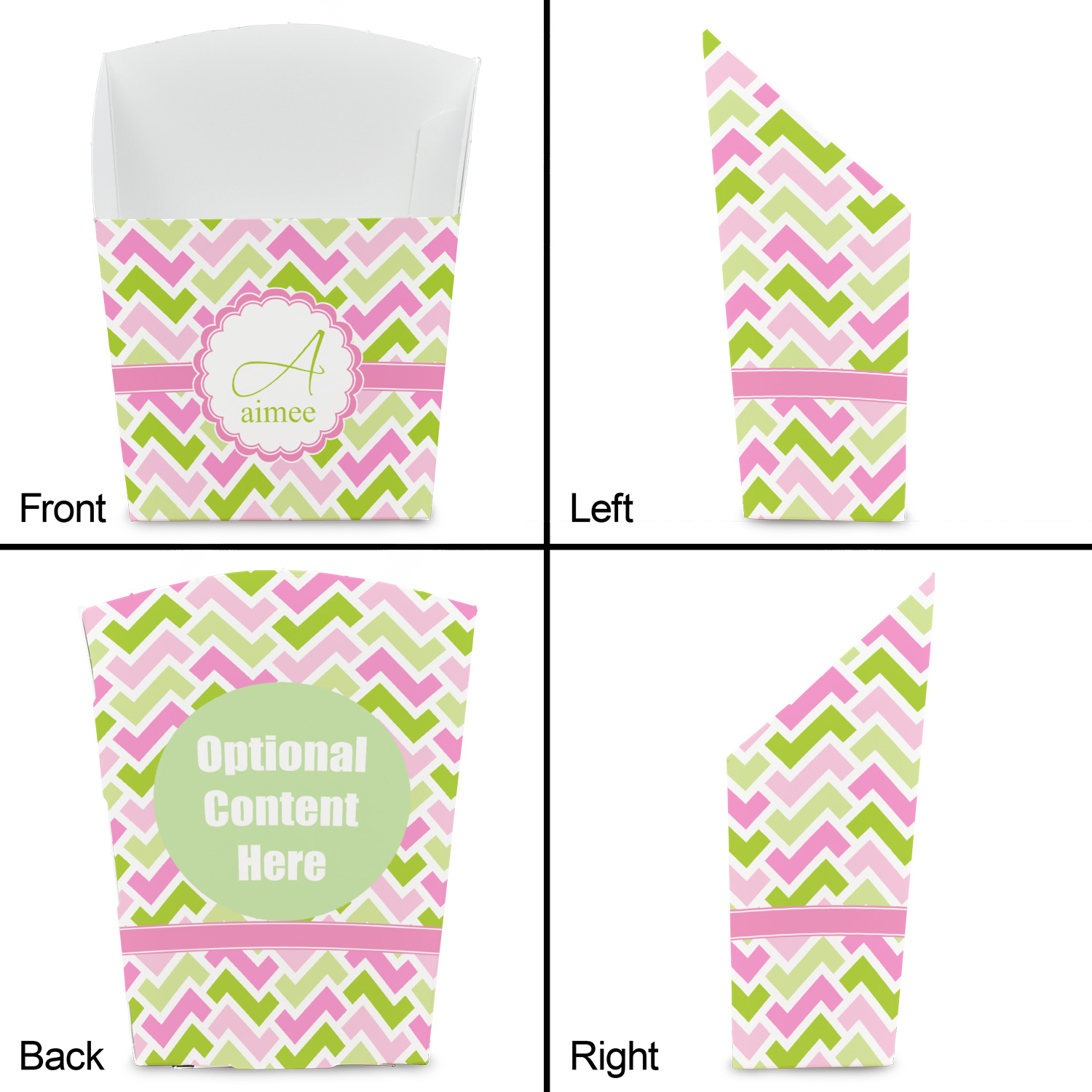 These favor boxes are printed in full color on quality cardstock - so coordinating the french fry favor boxes to match your event's themes or colors should be a breeze. You can upload your own design including artwork, logos or photos