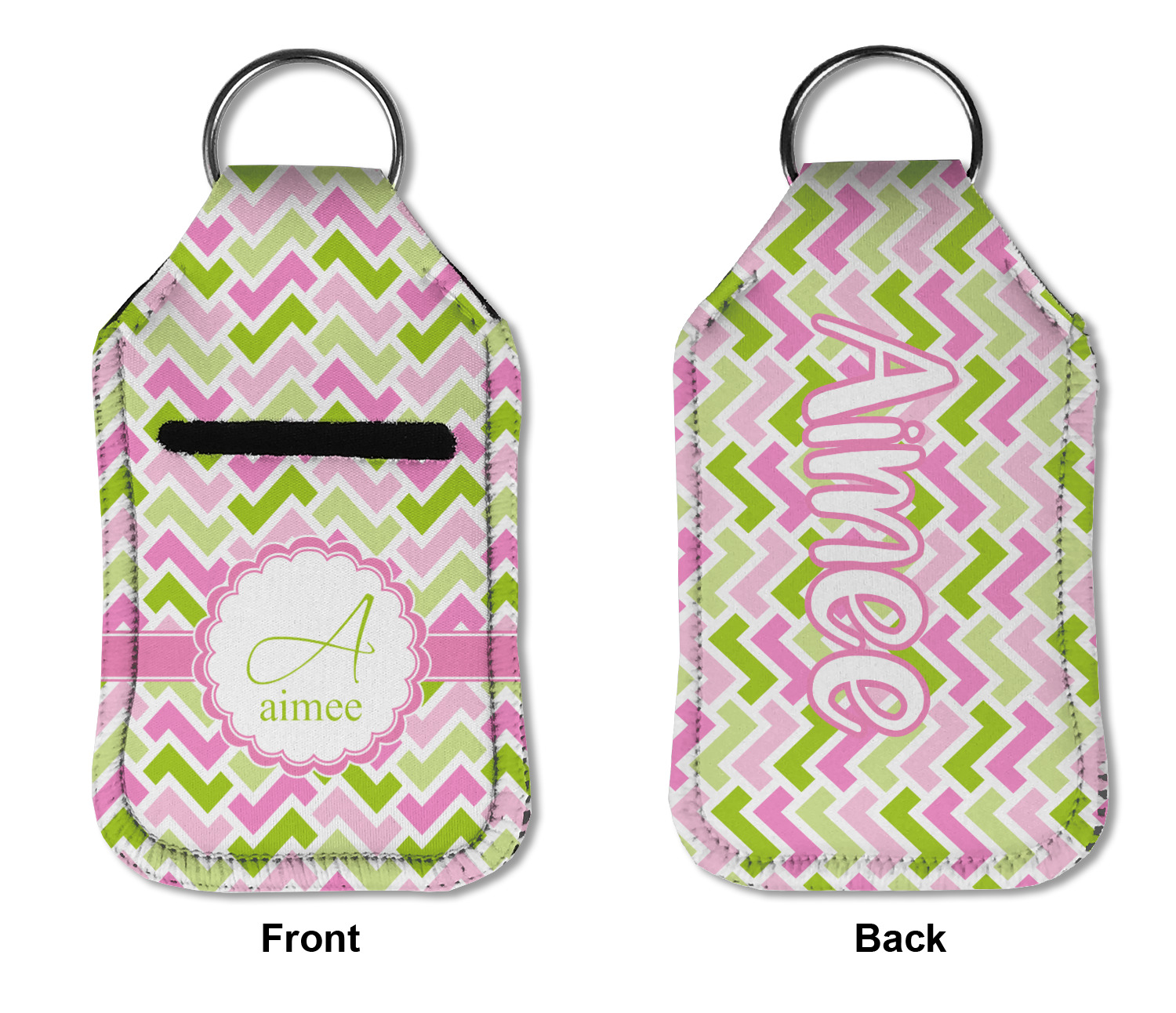 Each hand sanitizer holder comes with its own empty travel-sized, refillable hand sanitizer sure to fit snug in your customized sanitizer case! Our hand sanitizer cases are a durable, yet soft neoprene material sure to last any daily activities or travel agenda. Customize and personalize a hand sanitizer bottle holder with one of our two sizes - small (4.25" x 2.25") or large (5.5" x 2.5"). Each travel sanitizer holder comes with a keyring for attachment on bags, keys, or more!