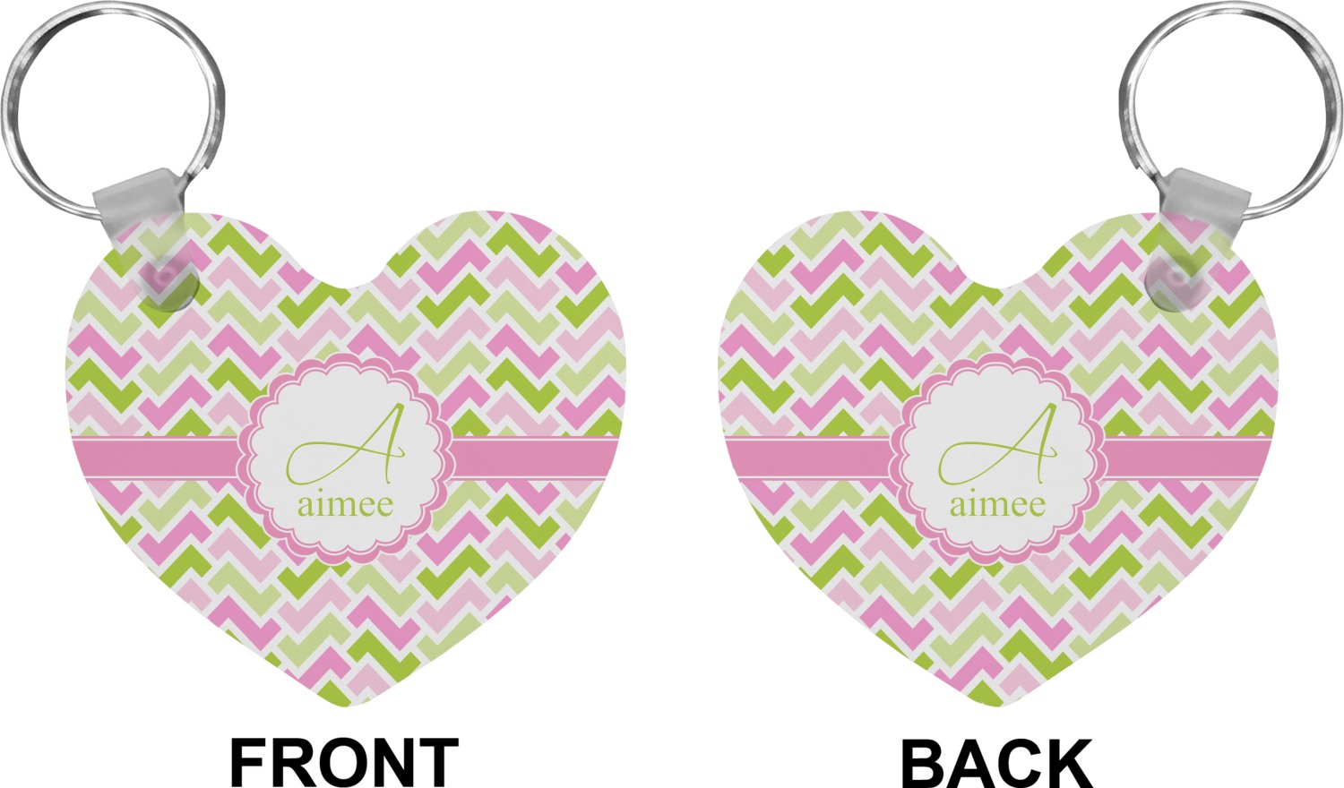 Our personalized keychains attach to the included metal, split key ring with a plastic, removable snap. Since a metal ring is included with your purchase, you have the liberty to keep your keys together on the ring, with or without your unique keychain. We offer this keychain in three different shapes: circle, heart, or diamond. We print your personalized design(s) on both sides of the key chain, and the surface has a glossy, reflective finish that only emphasizes your design. Each keychain is approximately 2.25 by 2.25 inches.