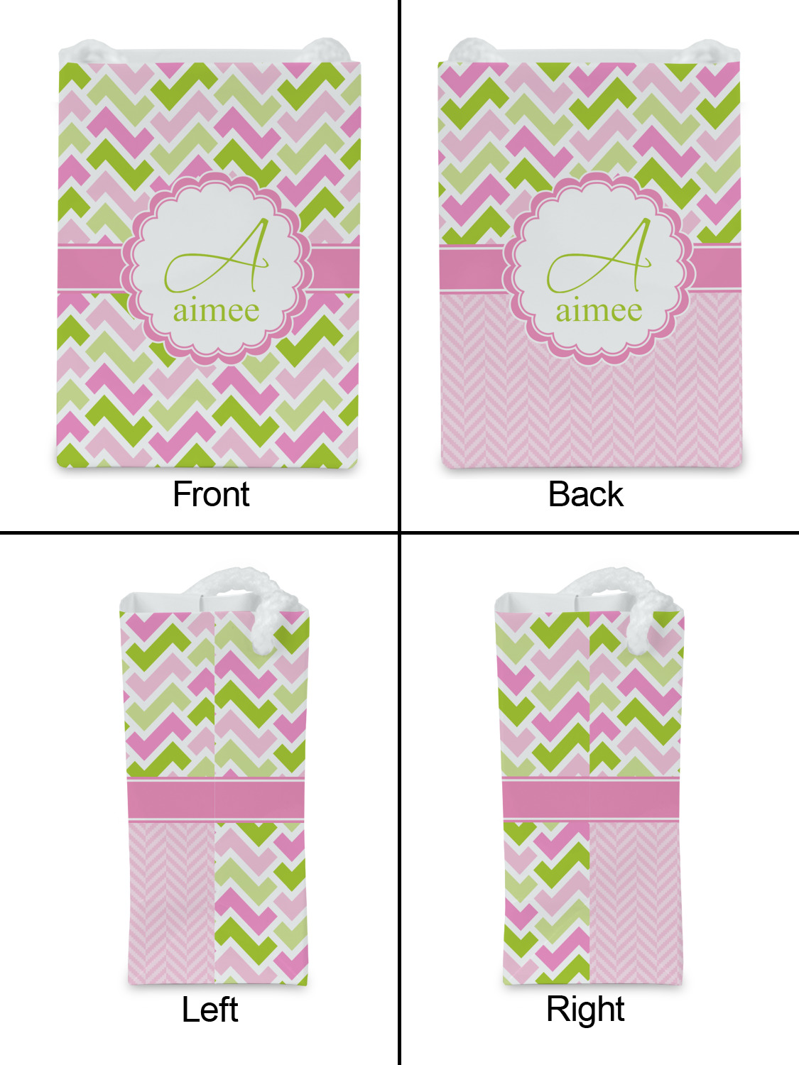 These jewelry gift bags are available in two finishes - matte or gloss. The are digitally printed in full color, then cut down to size, scored & folded. A single handle is attached.