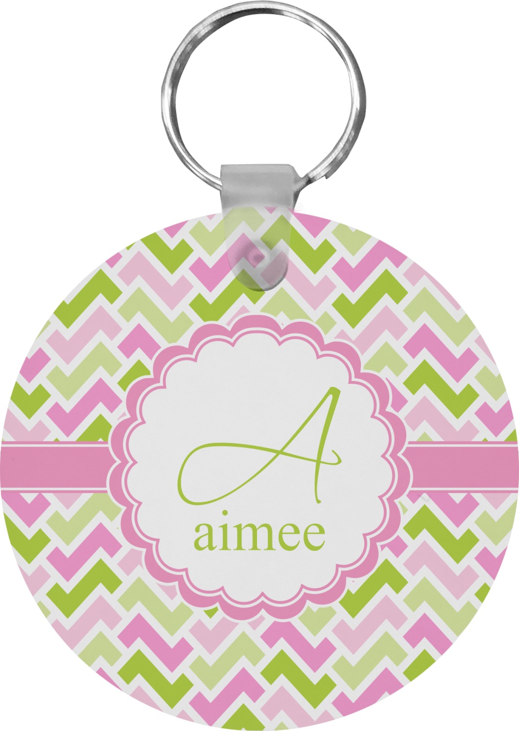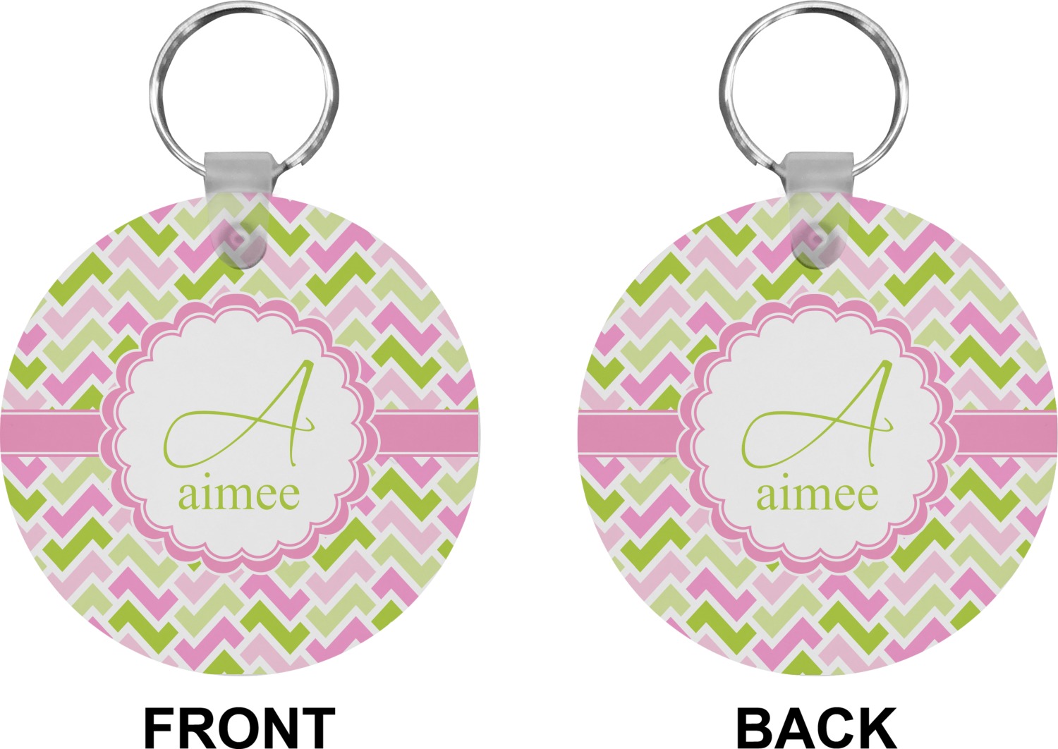 Our personalized keychains attach to the included metal, split key ring with a plastic, removable snap. Since a metal ring is included with your purchase, you have the liberty to keep your keys together on the ring, with or without your unique keychain. We offer this keychain in three different shapes: circle, heart, or diamond. We print your personalized design(s) on both sides of the key chain, and the surface has a glossy, reflective finish that only emphasizes your design. Each keychain is approximately 2.25 by 2.25 inches.