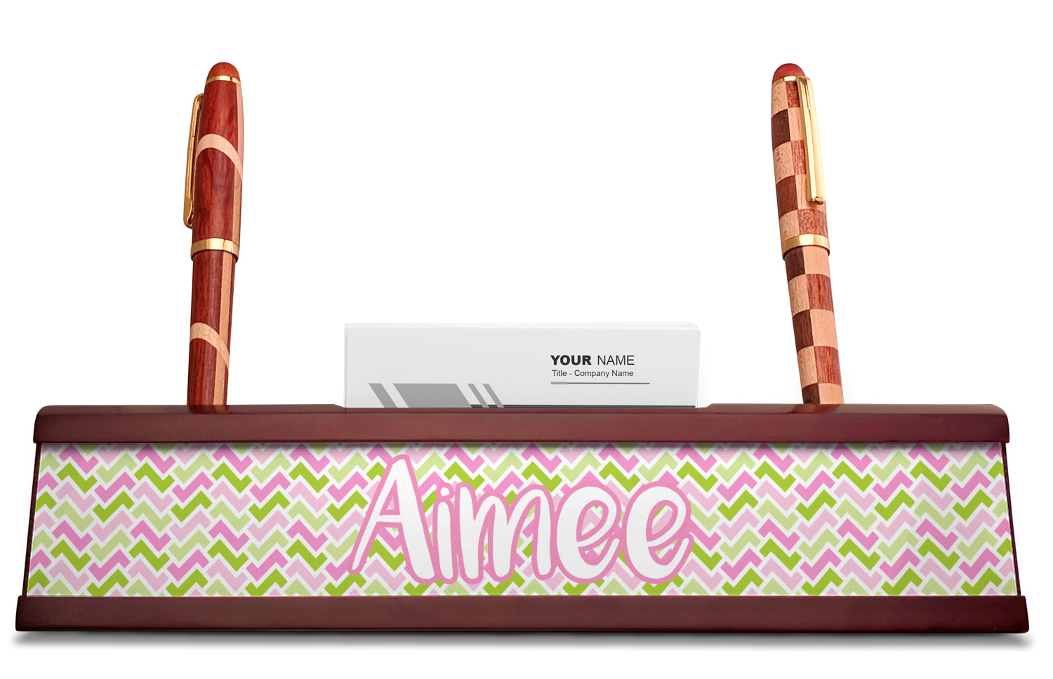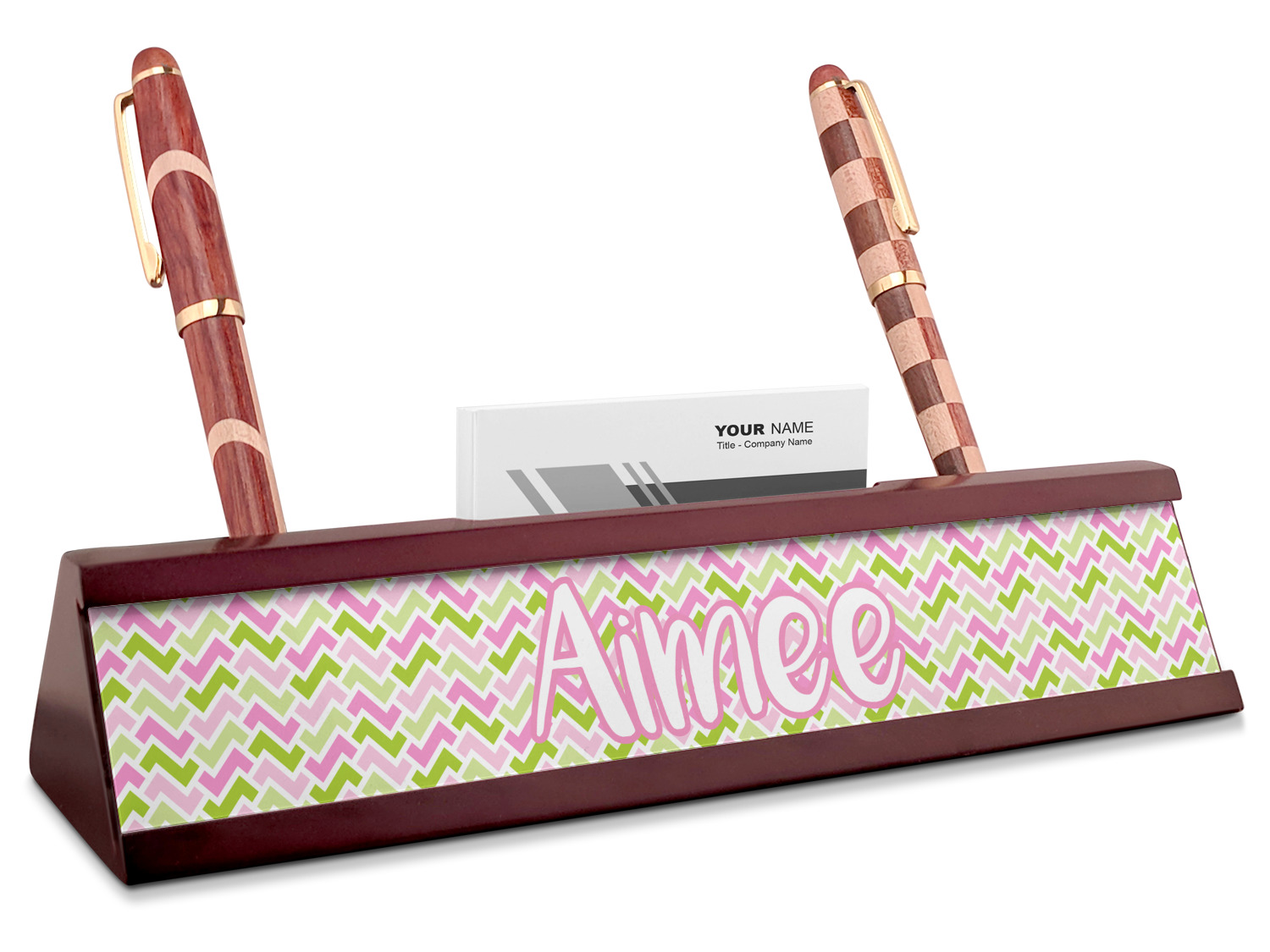 Shape + Symbol Designs for Red Mahogany Nameplates with Business Card Holder