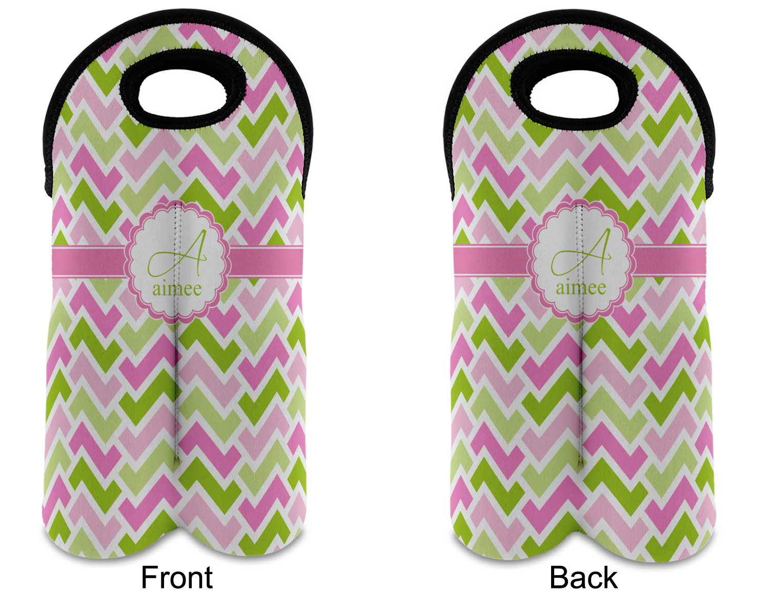 These tote bags are insulated to keep the bottles cold and have a stitched separation down the middle and double handles to keep the two bottles safe and secure during travels.