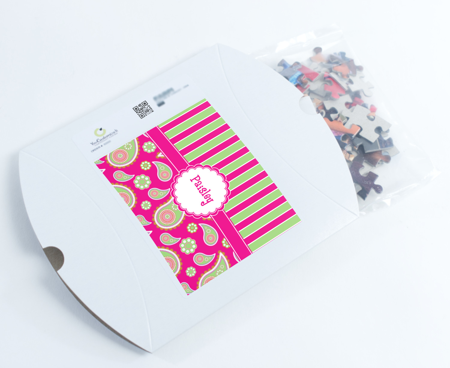 You can also upload your logo or art that you or your kids drew. To create more challenging jigsaw puzzles, you can create a pattern from with your logo or artwork. You can also add other elements such as text or personalization.