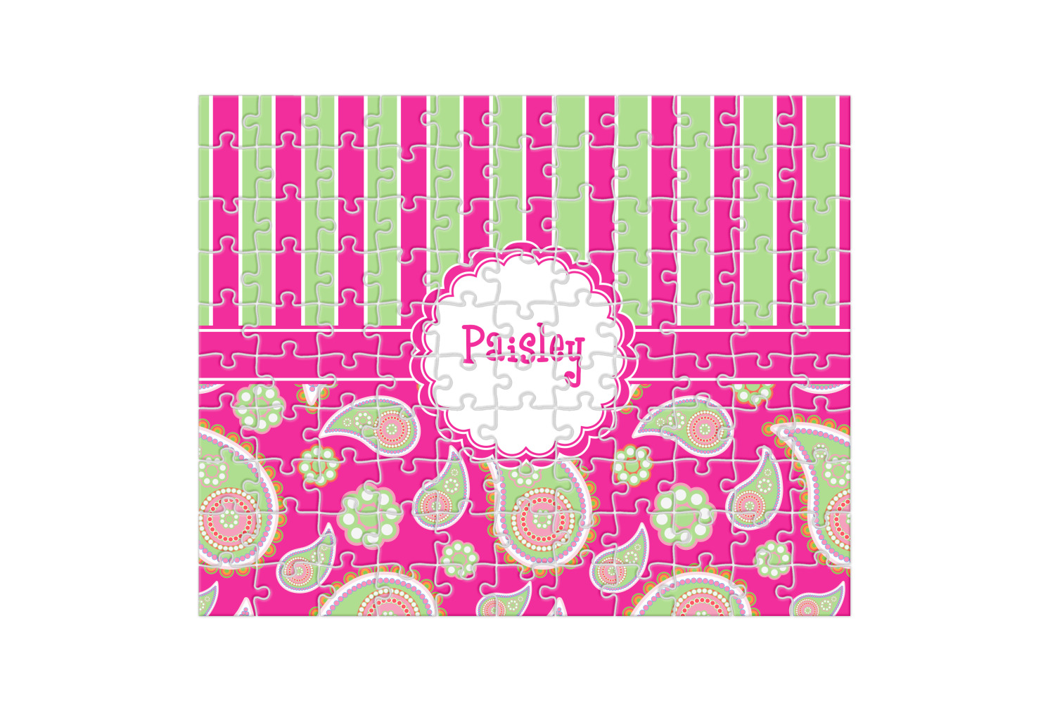 Depending on the look you are trying to achieve, you can add; a thematic pattern or background, with a photo in a frame and text or personalization to your puzzle. Basically if you can imagine it, you can design it!
