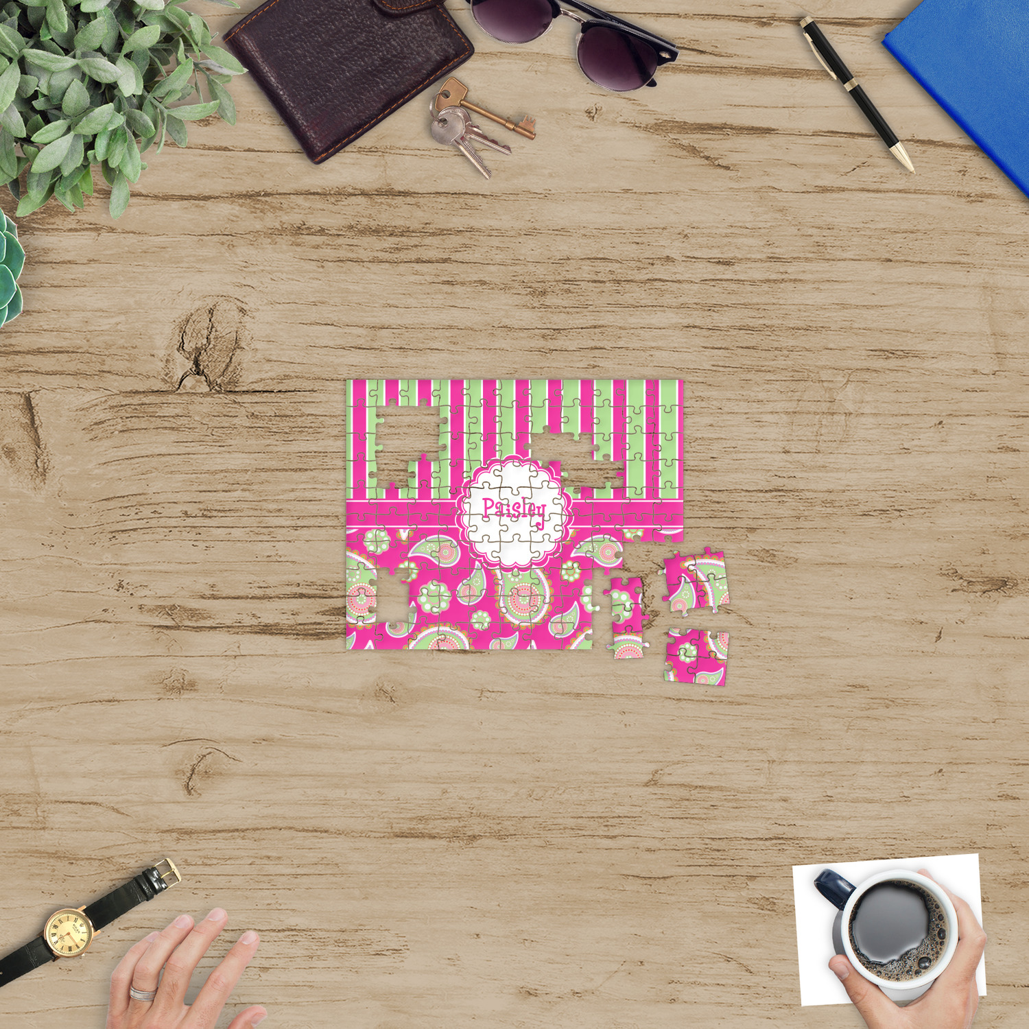At YouCustomizeIt.com, you get to decide what you want on your puzzle. A scenic picture, a family photo, framed photo, photo with text, artwork, logo, patterns etc. You decide what you want.