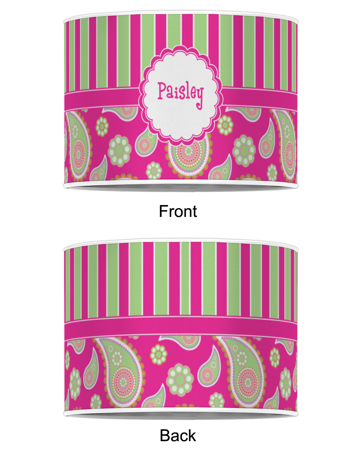 Our personalized drum lamp shades are available in 2 different materials: Poly-film or fabric. Poly-film lamp shades come with the option of white or black border trims to best match your customized design. Fabric lamp shades are finished with a rolled edge for a clean modern look.