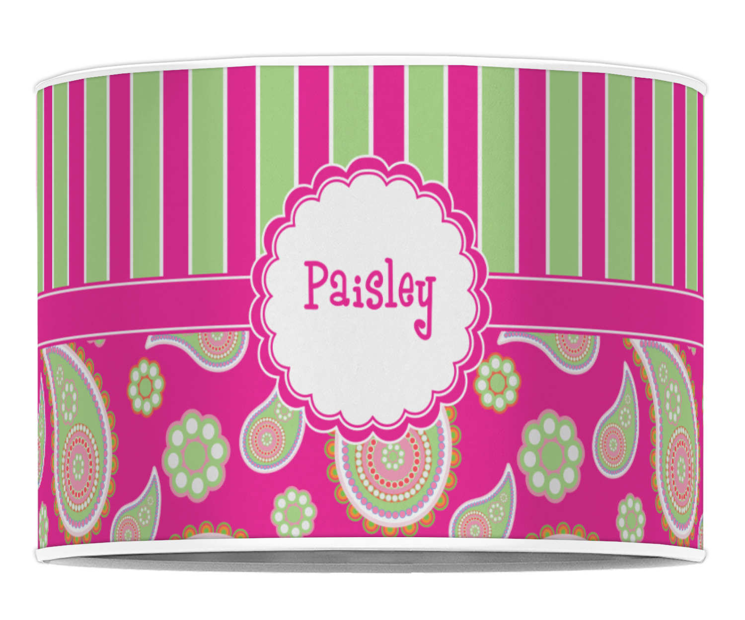 If you have a passion for paisley then this is the pattern for you. This bold and bright pink & green paisley pattern is made from today's trendy color combination of pinks and greens. As if the paisley design was not enchanting enough we have up the ante by adding bold stripes of hot pink and lime green on the top.