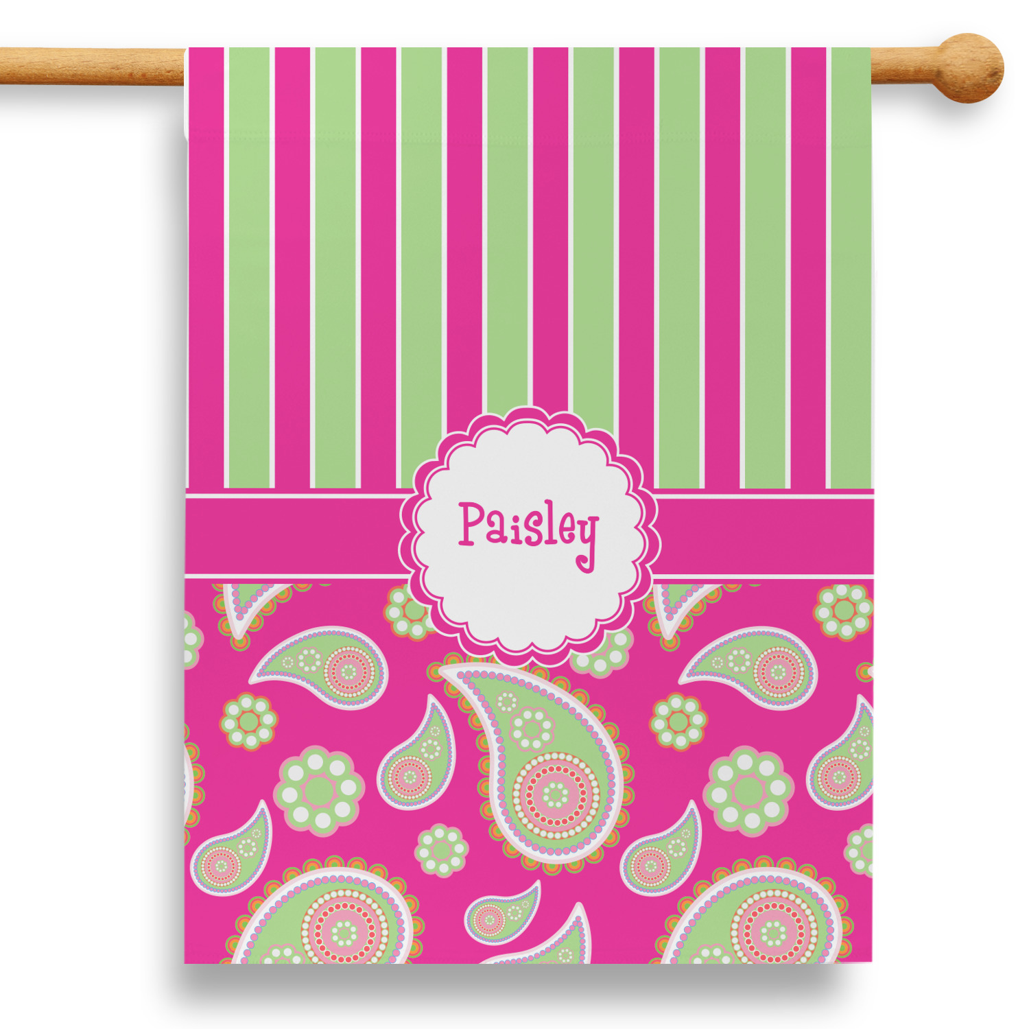 If you have a passion for paisley then this is the pattern for you. This bold and bright pink & green paisley pattern is made from today's trendy color combination of pinks and greens. As if the paisley design was not enchanting enough we have up the ante by adding bold stripes of hot pink and lime green on the top.