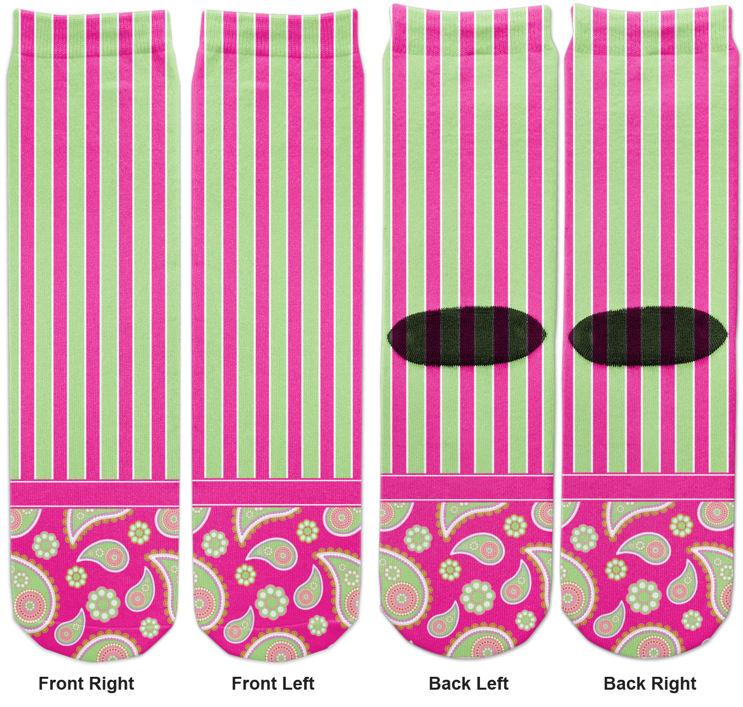 If you have a passion for paisley then this is the pattern for you. This bold and bright pink & green paisley pattern is made from today's trendy color combination of pinks and greens. As if the paisley design was not enchanting enough we have up the ante by adding bold stripes of hot pink and lime green on the top.